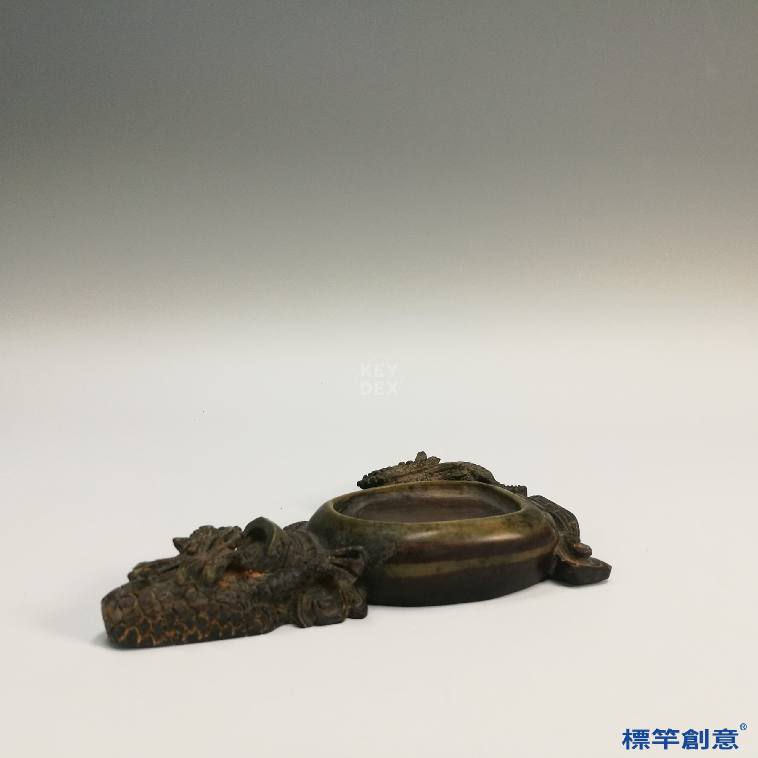 IA039 清代康熙顧德麟款文房刻龍紋石硯
