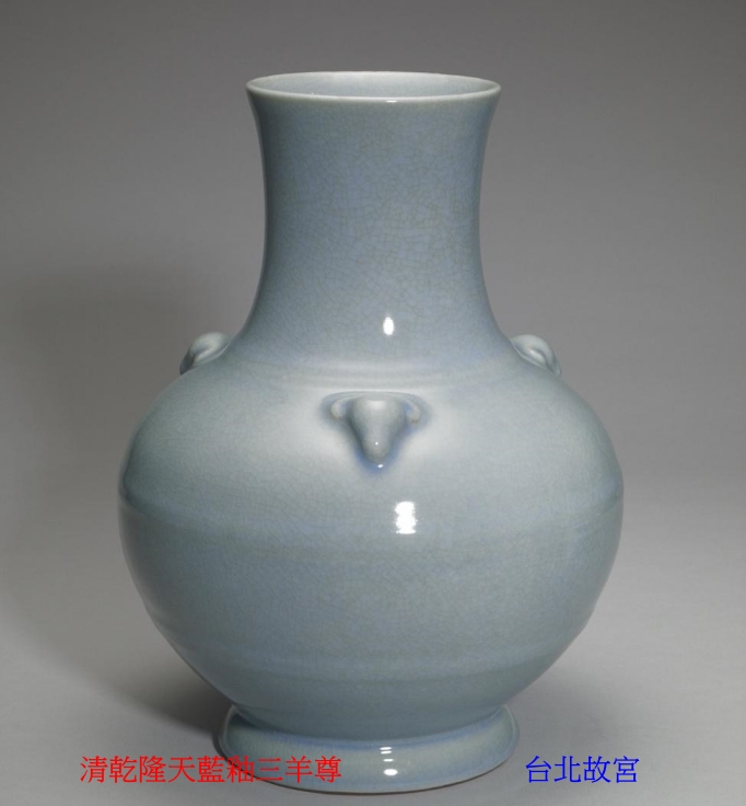 本器通高約31公分,口徑約10公分,尊體呈扁圓腹、短頸微撇口,下承圈足,比例協調。器身三面貼塑站立羊首,造型生動,姿態自然,象徵“三羊開泰”之吉祥寓意,整體器形穩重而具瑞氣。