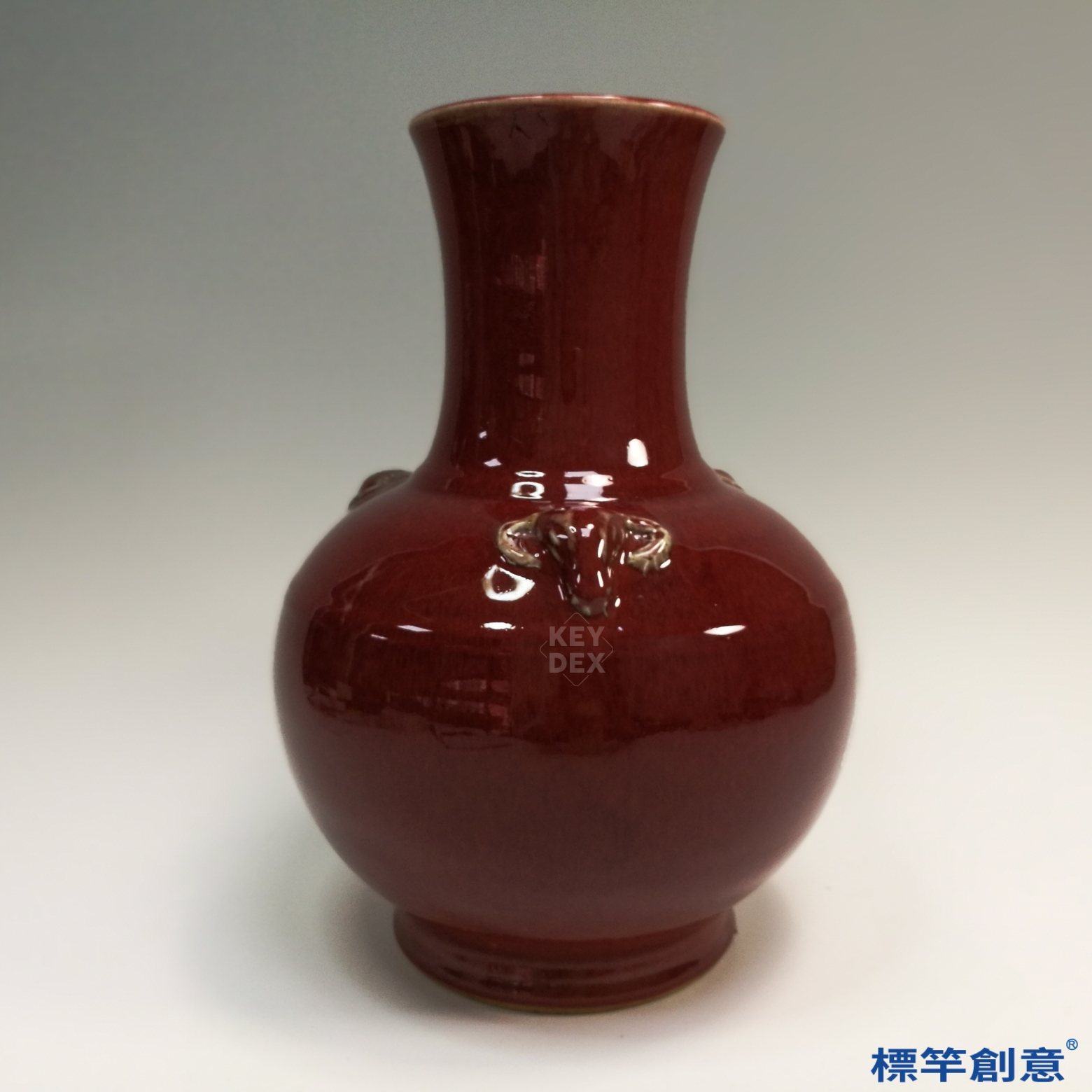 先以模製成形,經修坯貼塑三羊首後,施以銅紅低溫釉,再入還原氣氛窯中低溫燒成。豇豆紅釉之成功燒成需控制火候與氣氛極精準,成器率低,工藝難度高,故為清代名貴釉色之一。