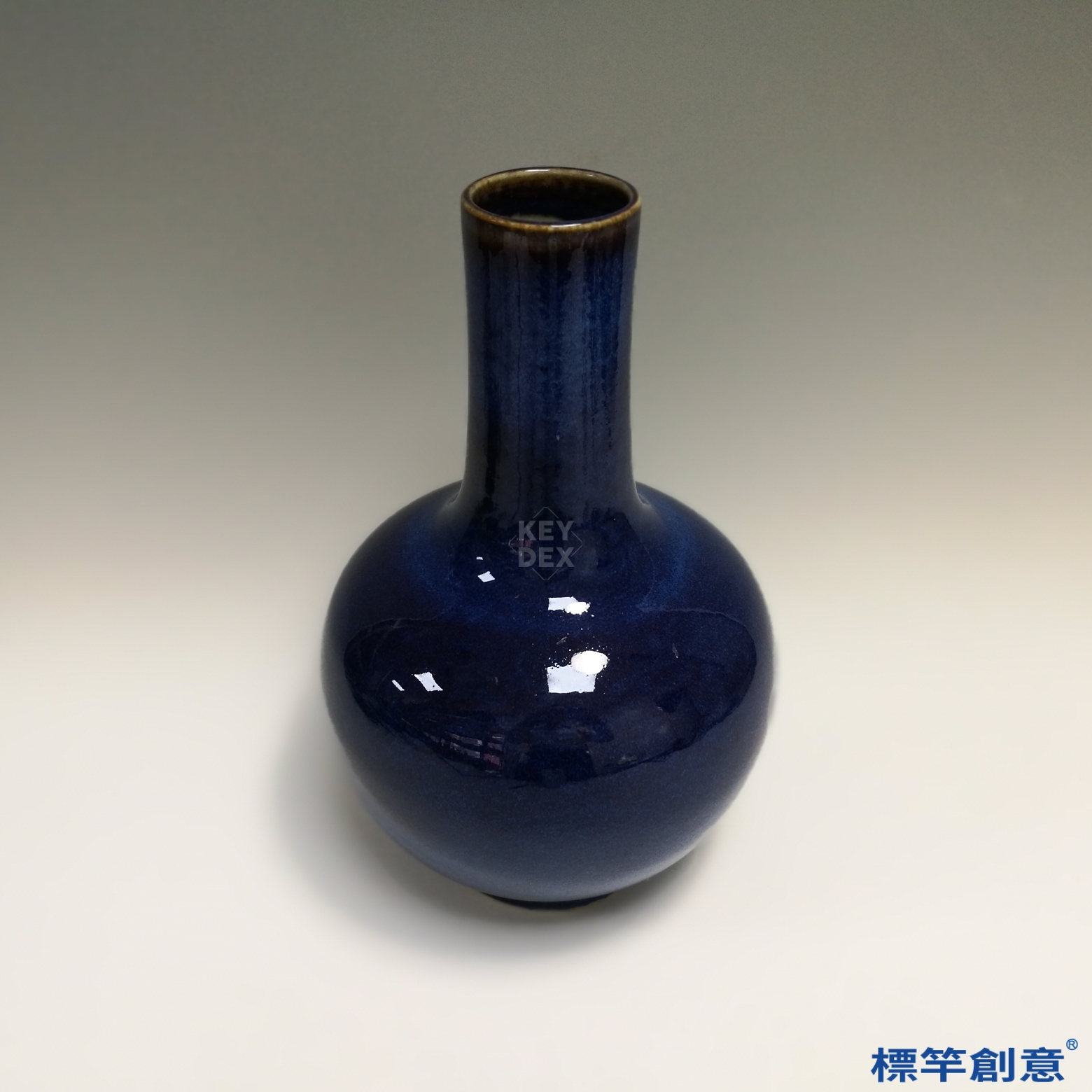 通體施窯變藍釉,釉色深邃多變,由深藍至鈷紫、或隱現鐵灰斑斕,釉面自然流淌、層次細膩,具金屬般光澤與流動感。窯變釉為高難度釉色,需靠火候與釉料自然生成紋理與色差,每件皆獨一無二。