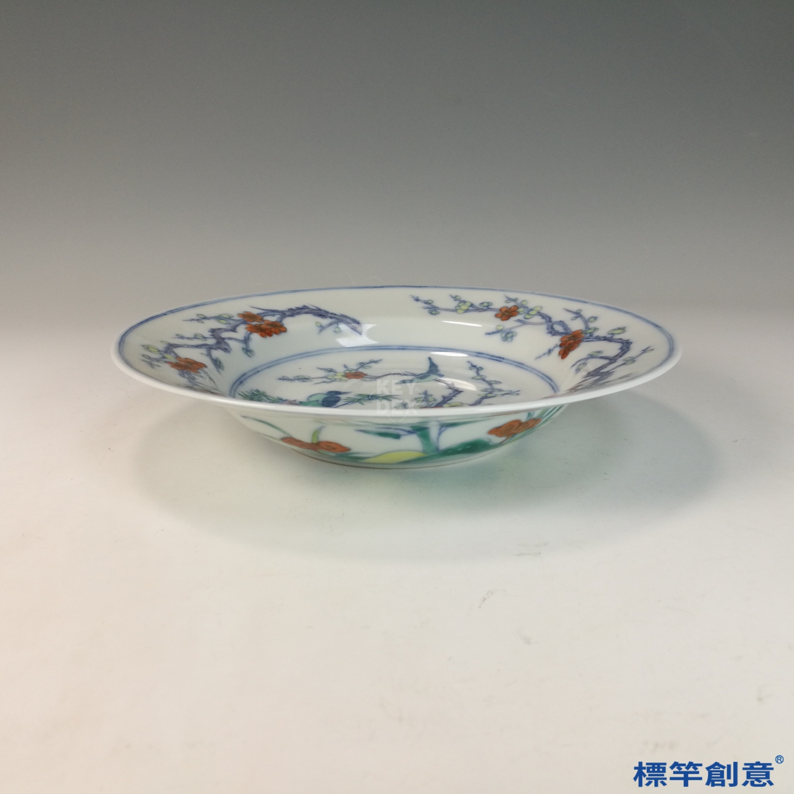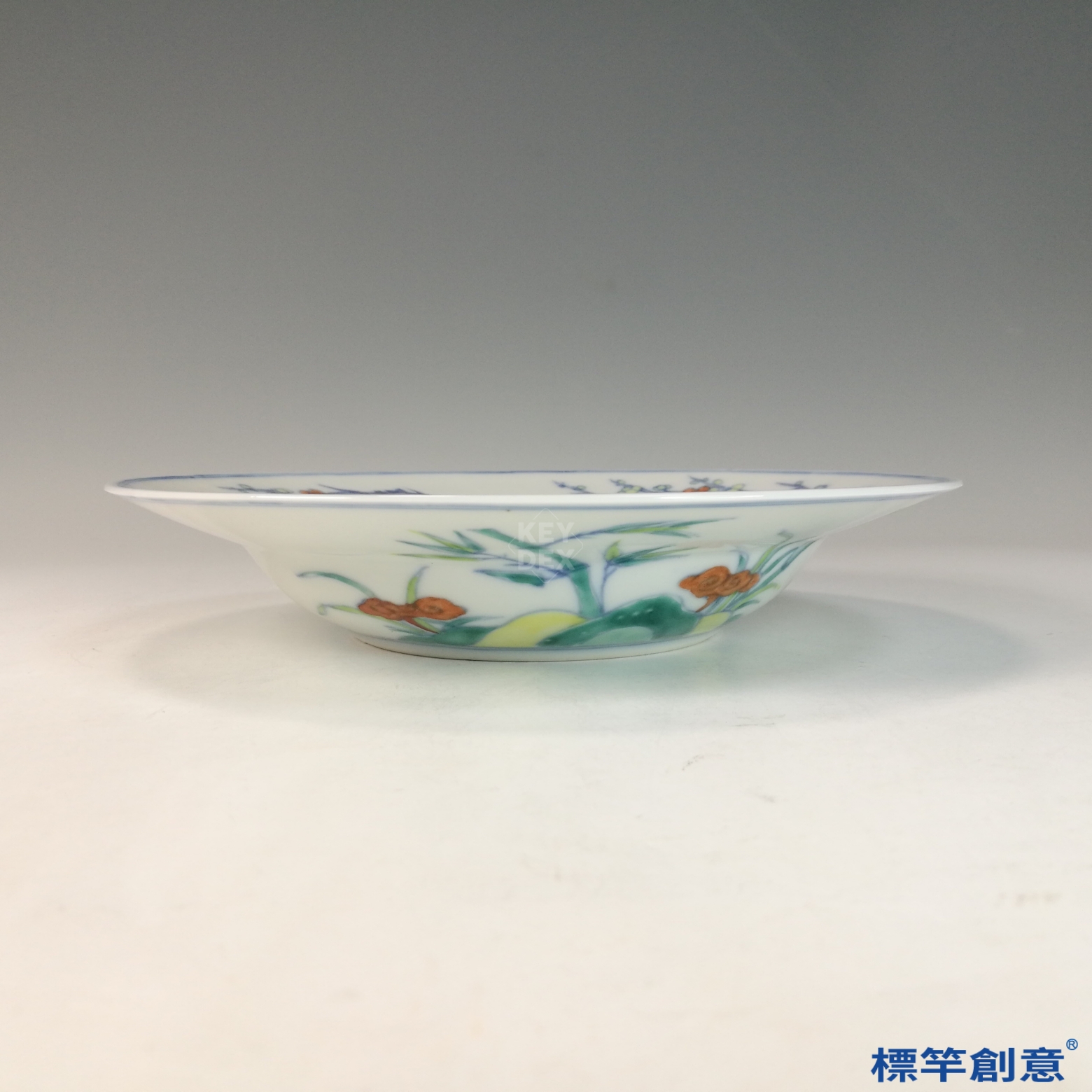 其折沿與盤面布局可啟發現代瓷器設計中裝飾與實用的融合,亦可作為文創產品圖案或器形開發的靈感來源,傳承清代工藝之雅致精神。