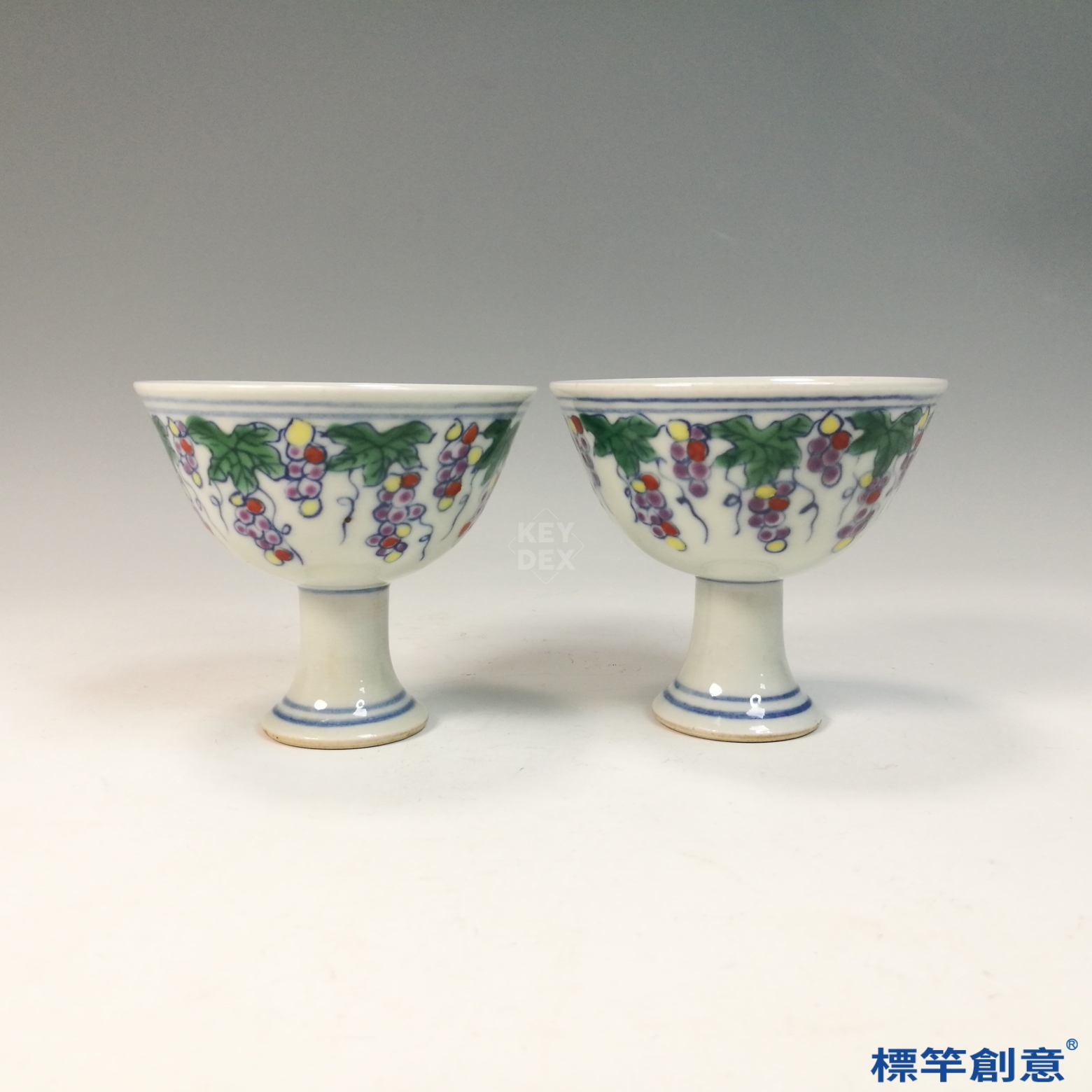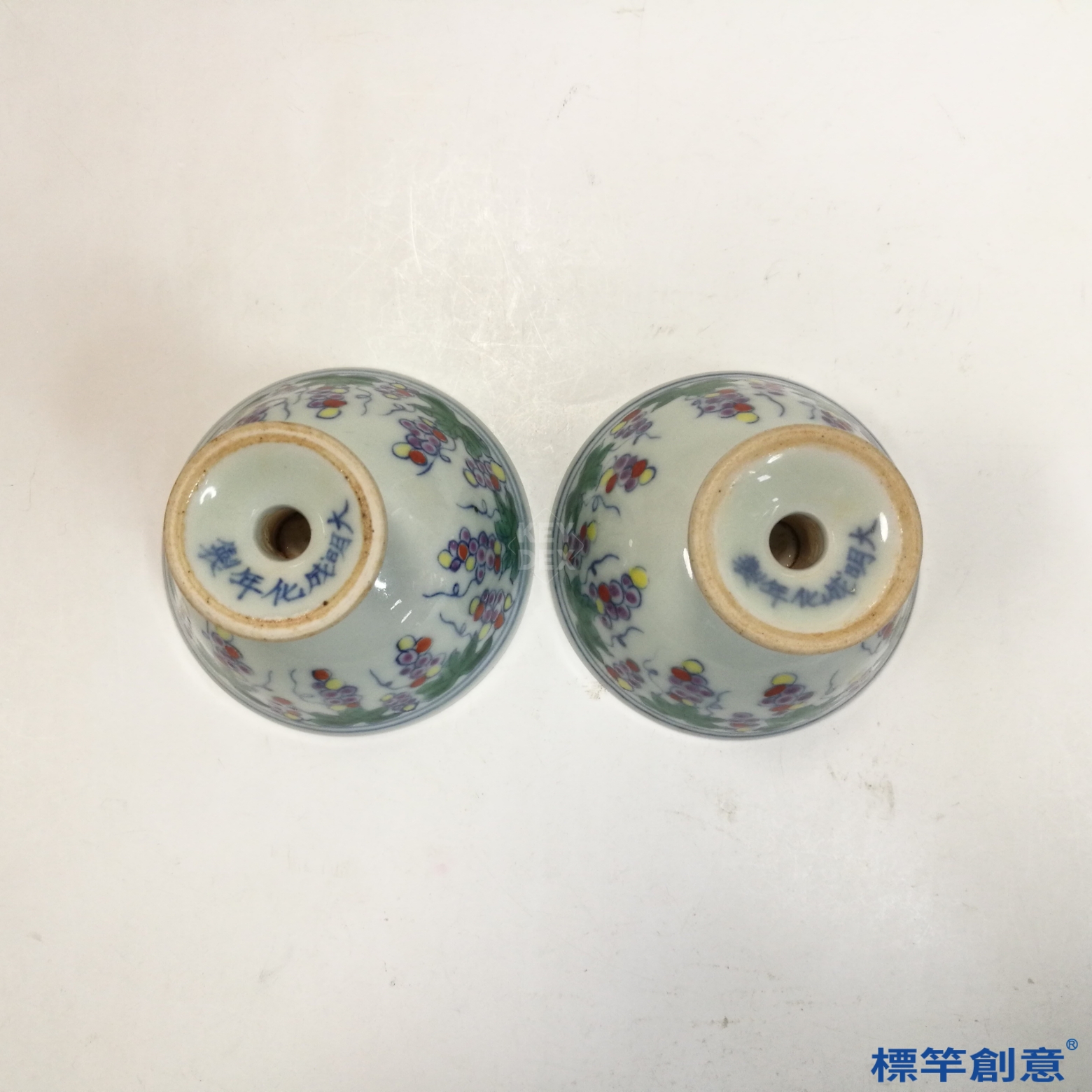 IA066 清代晚期鬥彩成化款景德鎮窯高足杯一對