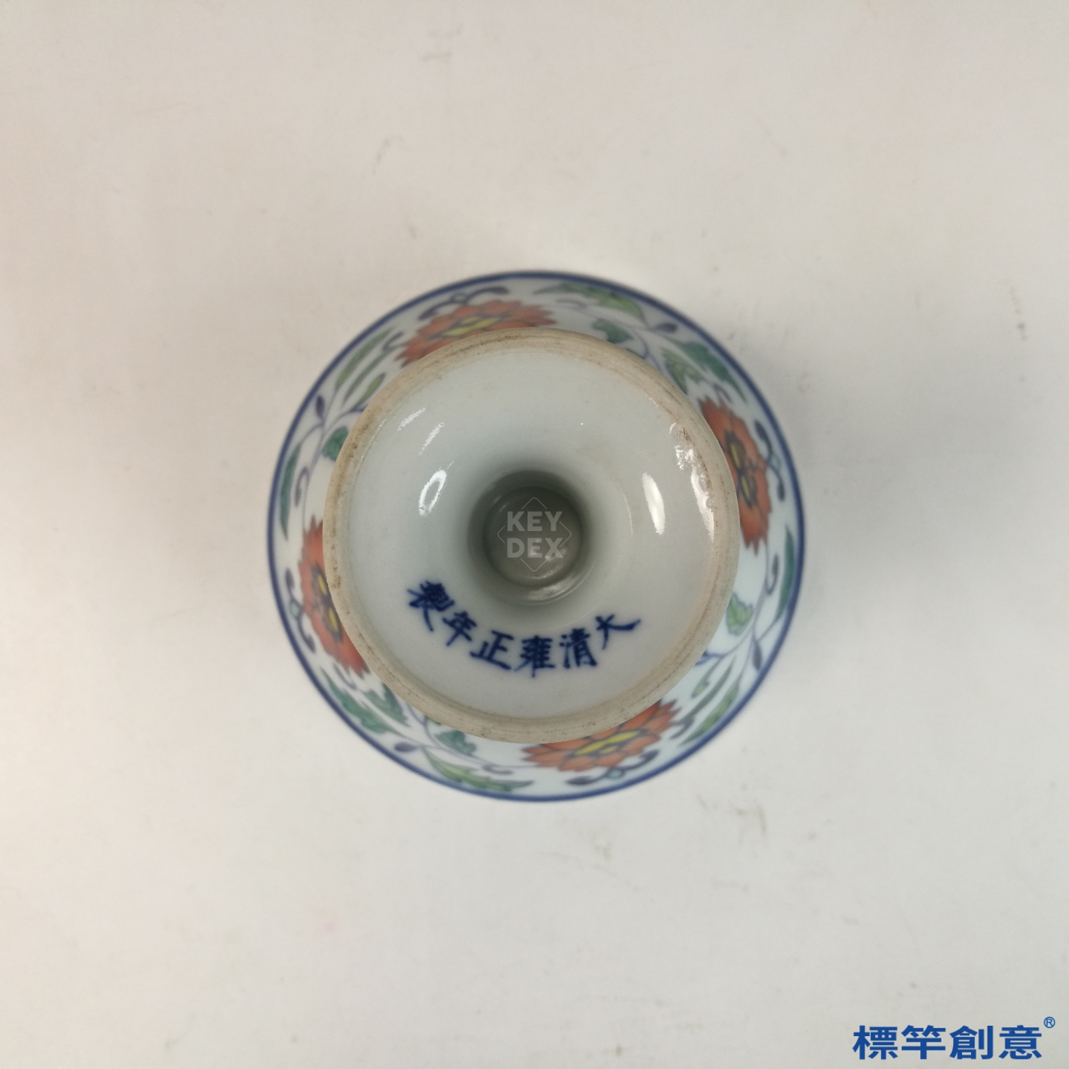 此器製於清代晚期,為景德鎮窯所製,外底書「大清雍正年製」仿款。清晚期鬥彩技藝盛行,此類雍正款式之仿品常為陳設或外銷之用,反映宮廷藝術向民間轉化之風尚。