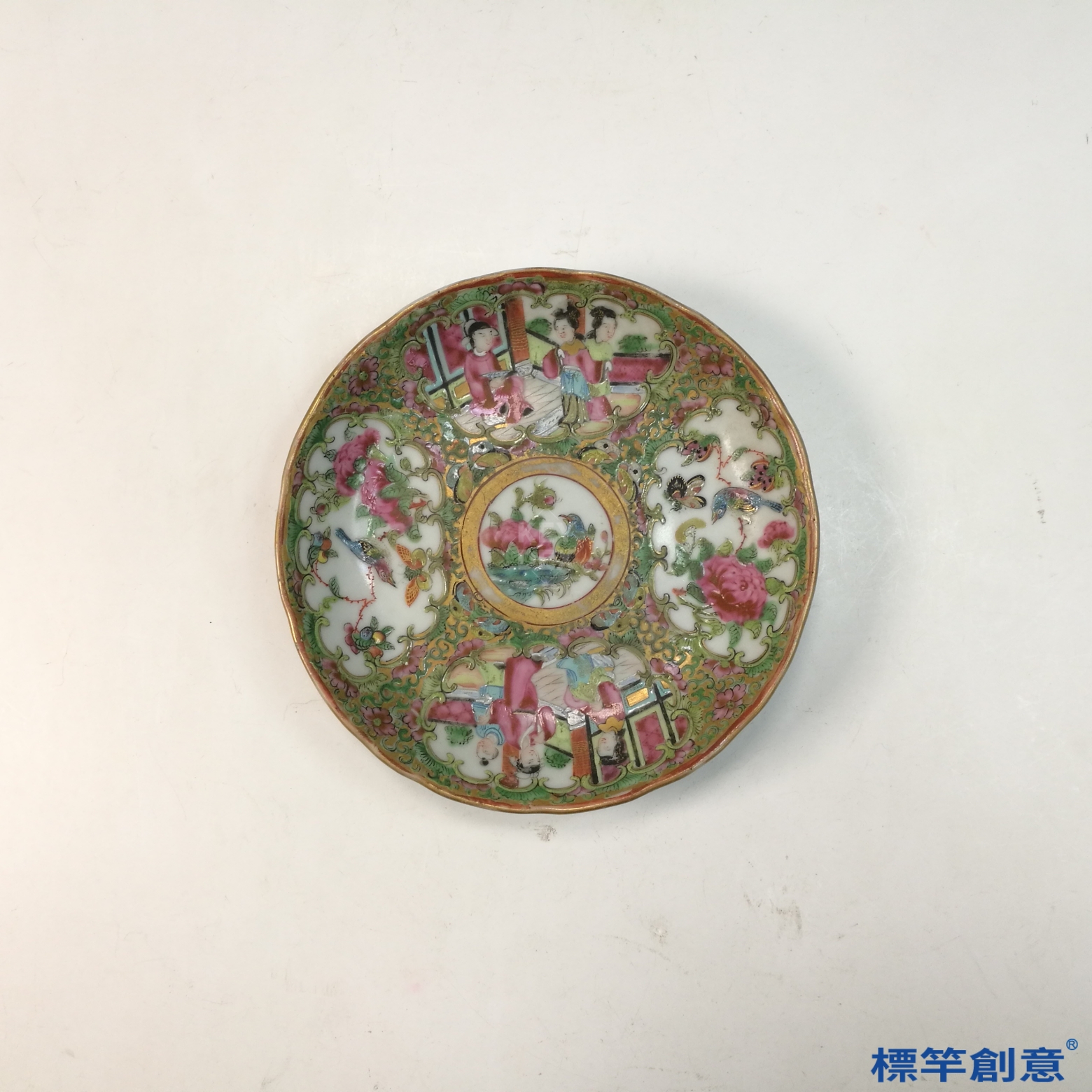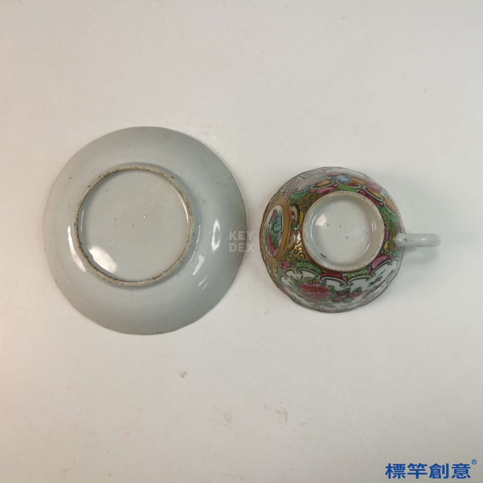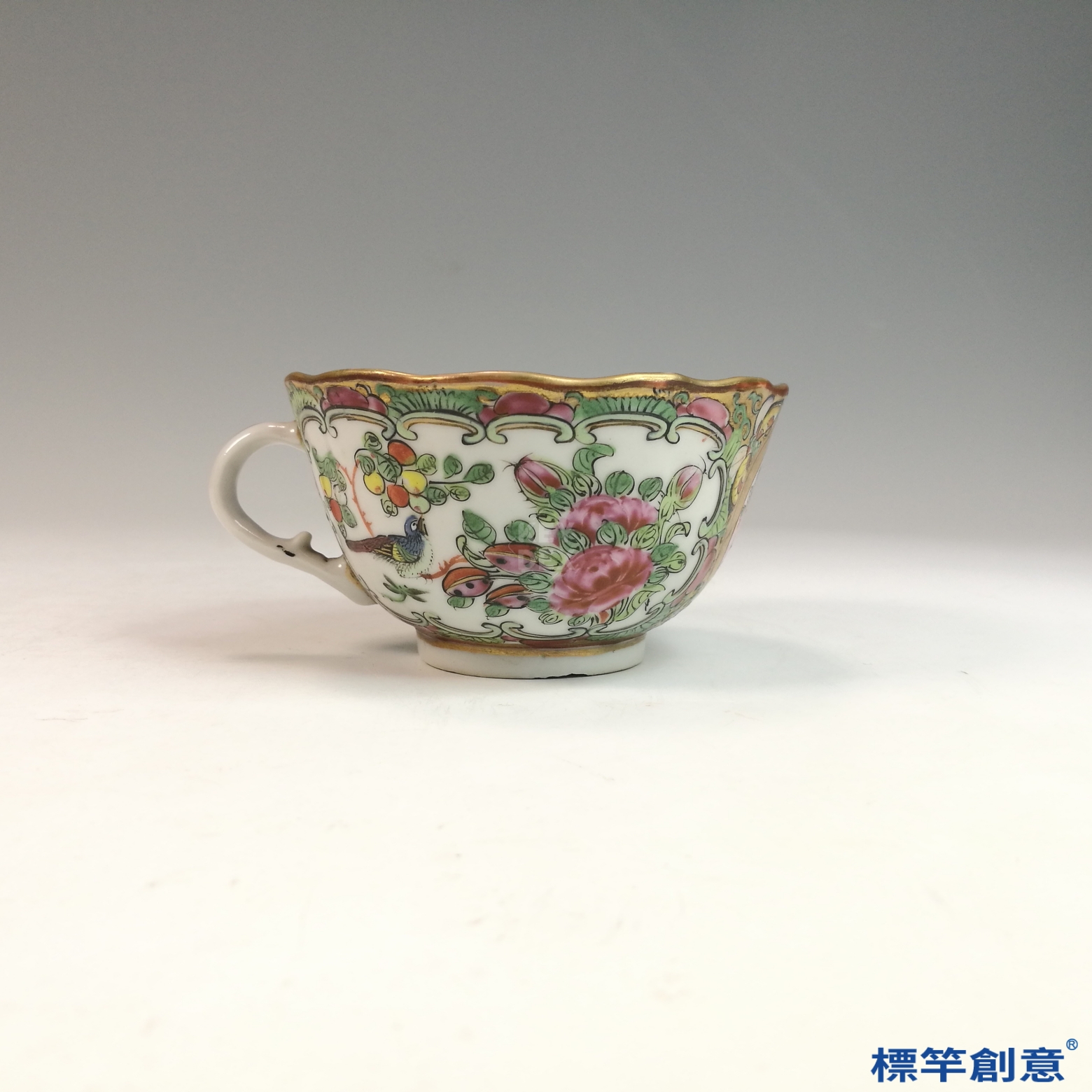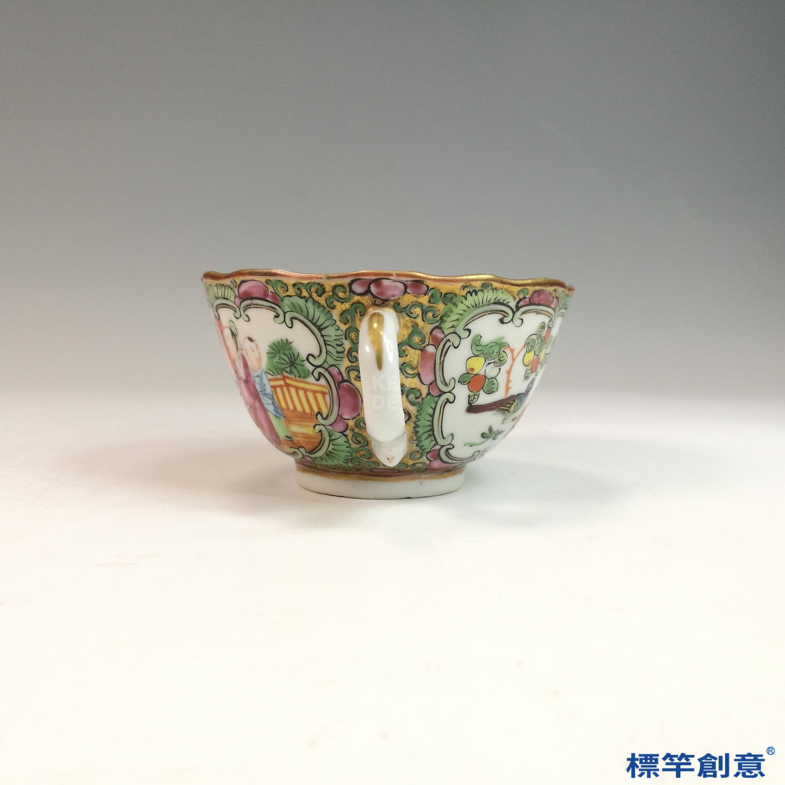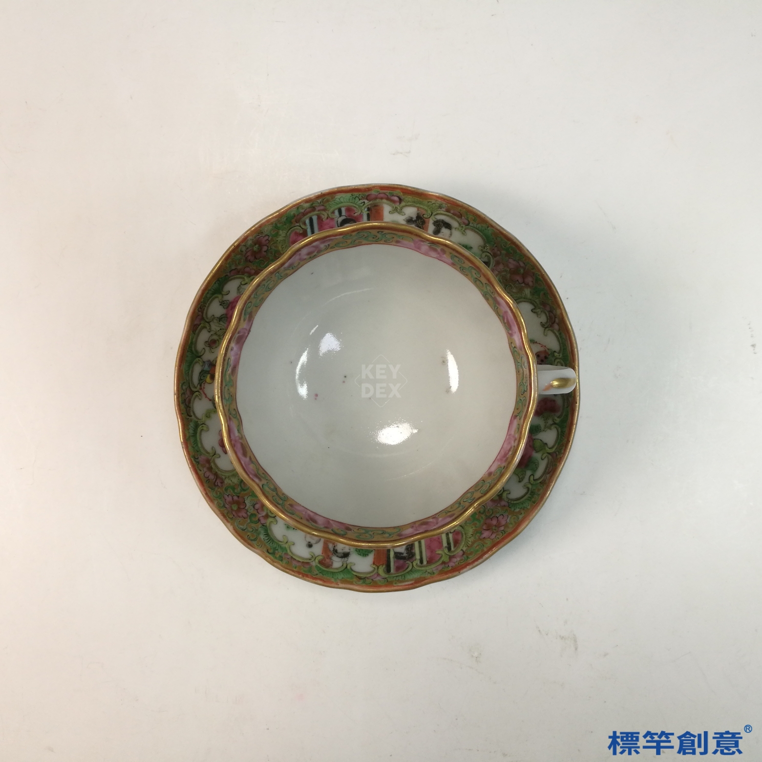 IA071 清代同治廣彩人物故事花口描金外銷咖啡杯托盤一套