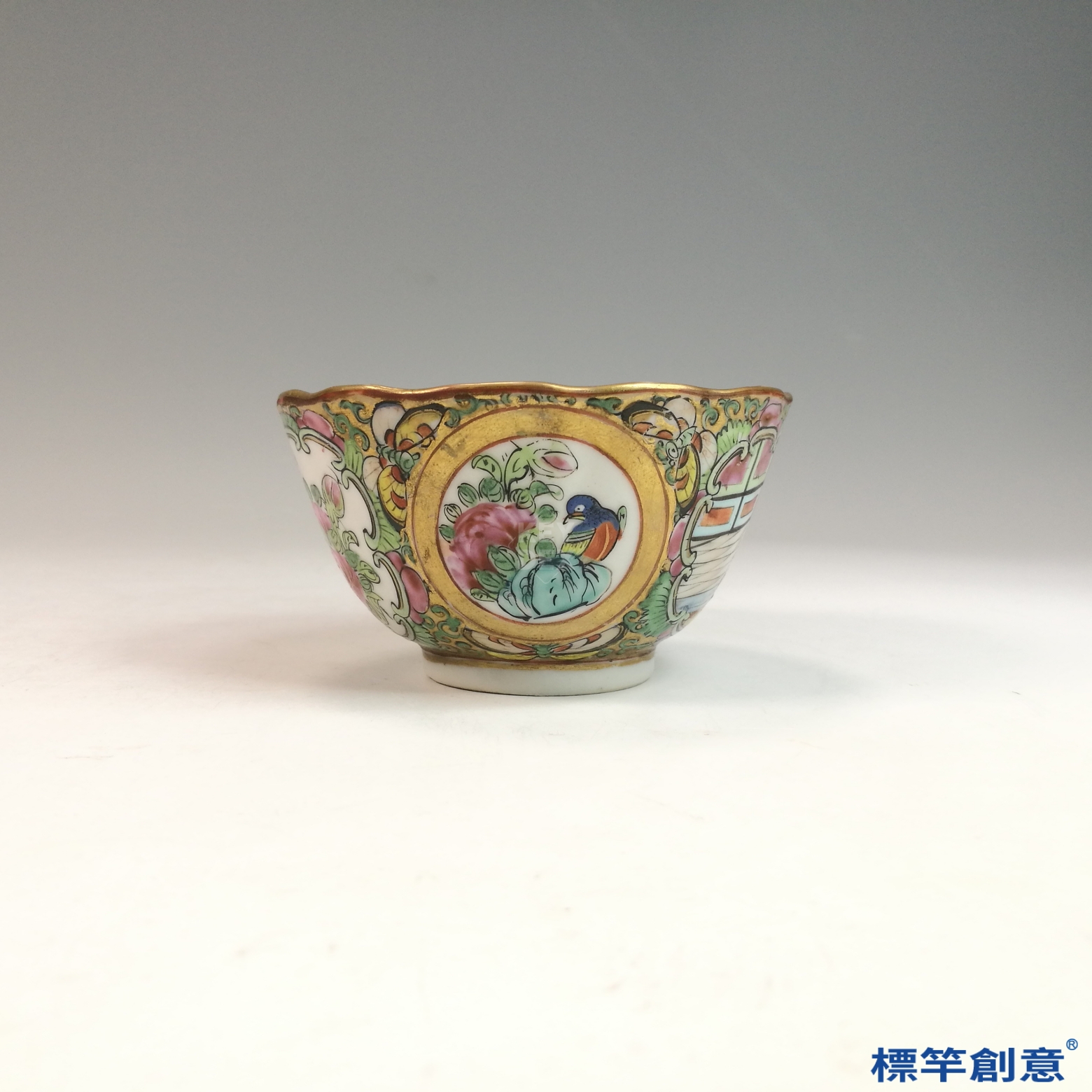 IB003 民國初年彩繪百花不落地碗