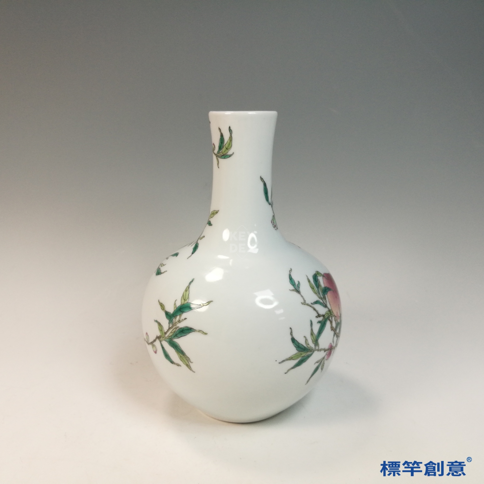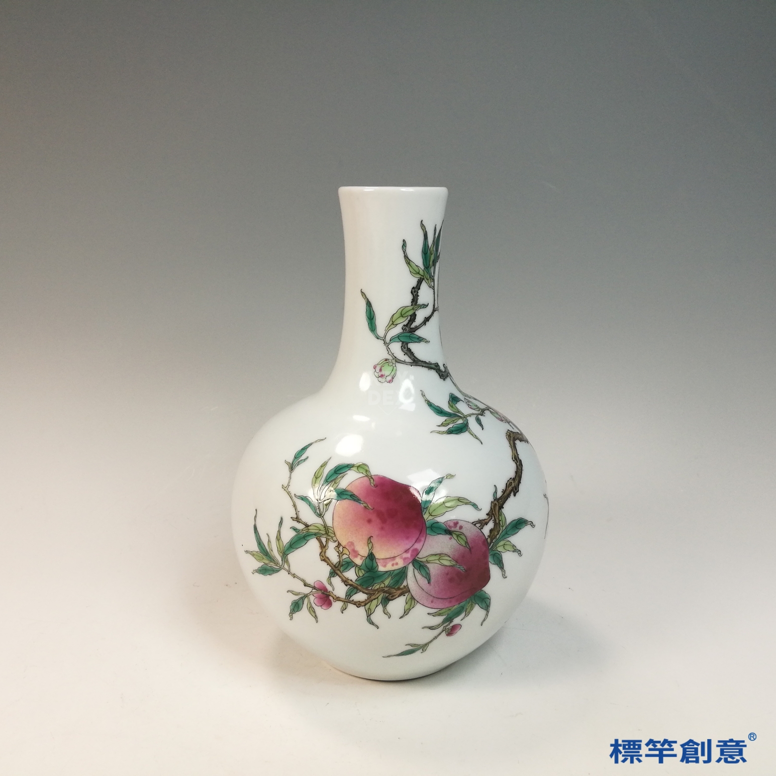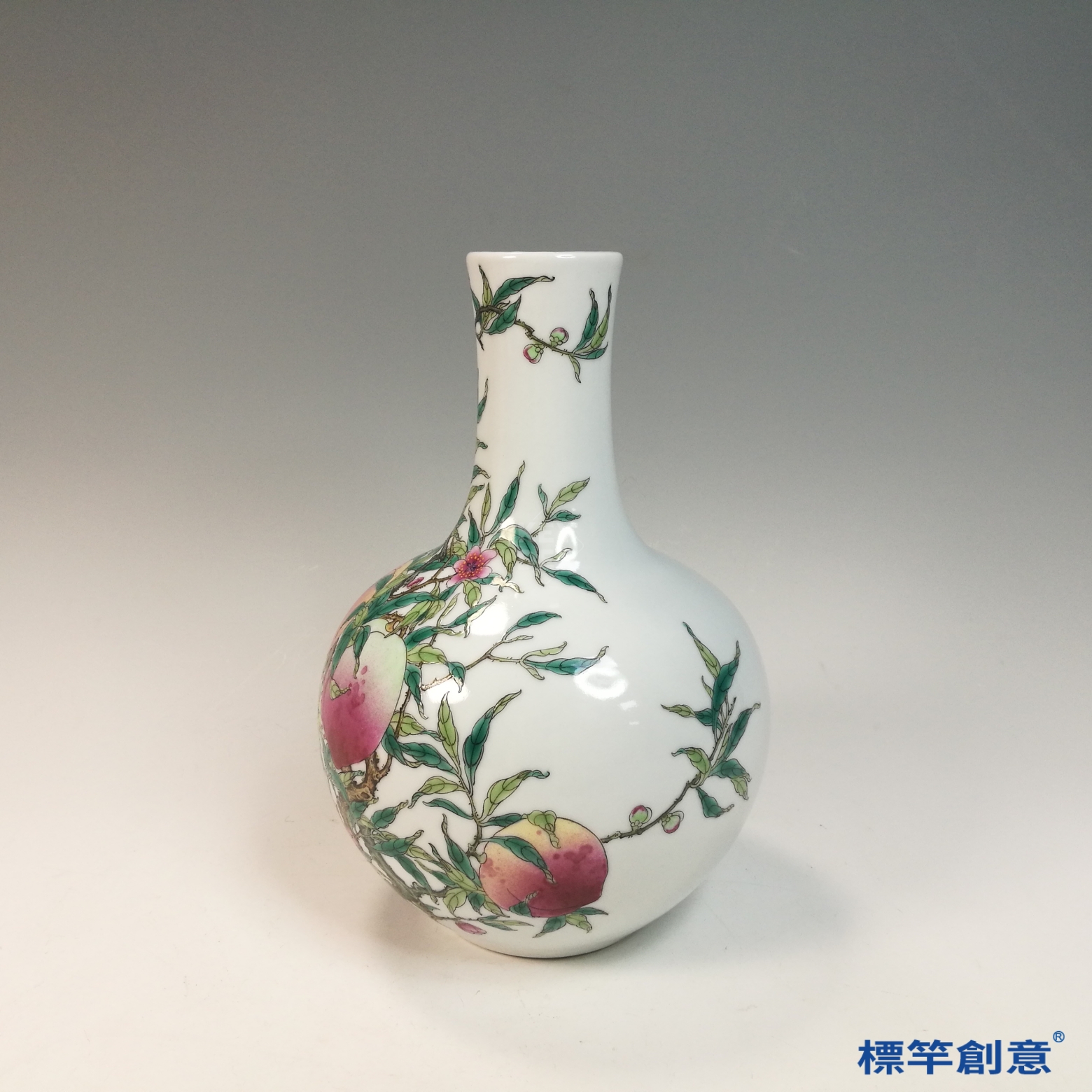 壽桃與天球瓶器形具高辨識度,適合作為現代居室擺設、仿古花器或文創祝壽禮品設計靈感,融合古典寓意與現代美學,展現文化延續與工藝美感。