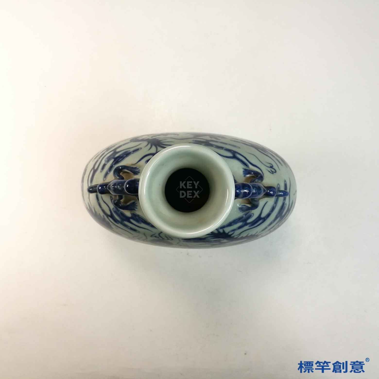 EG008 南北朝臨水窯青瓷刻蓮紋雙雞首龍把壺
