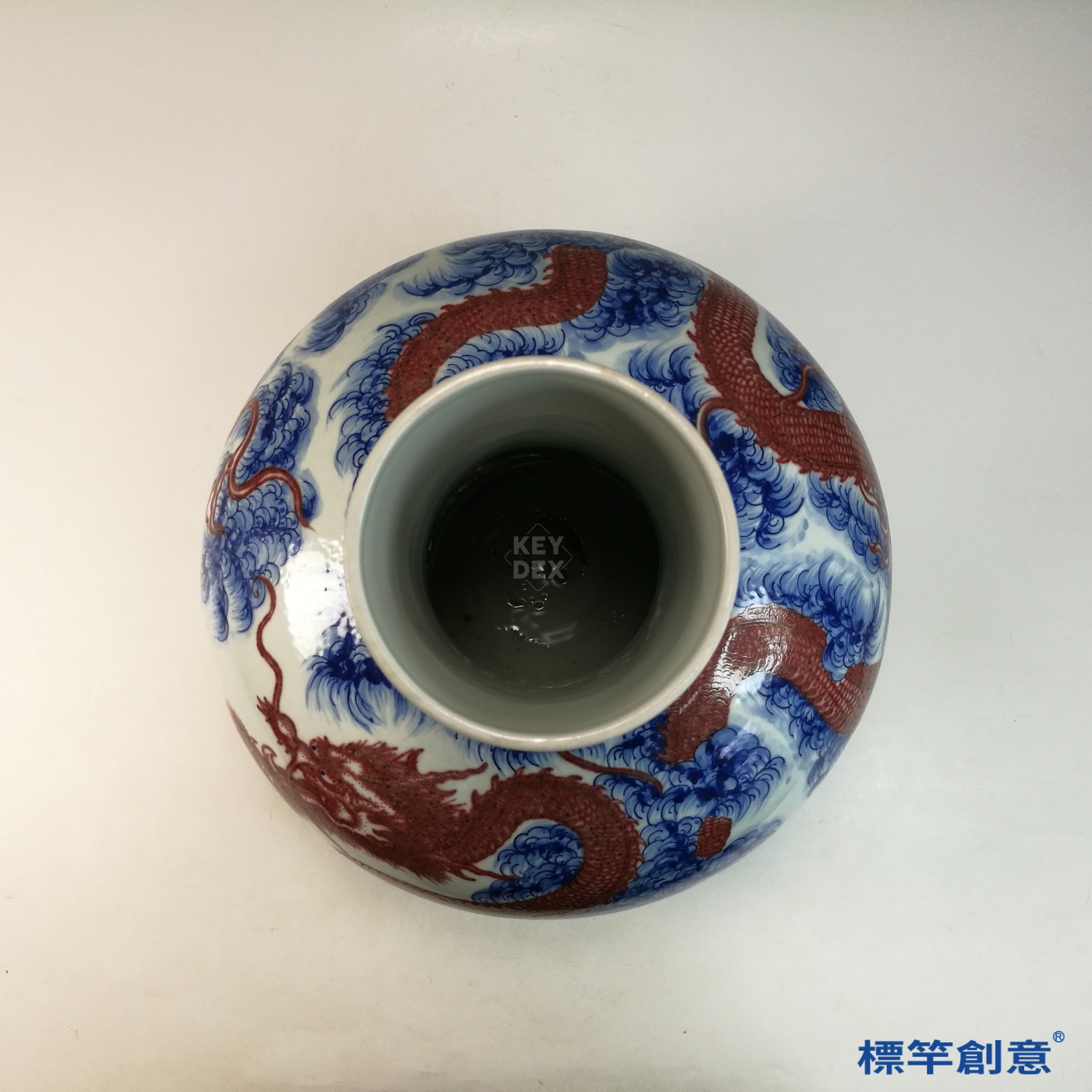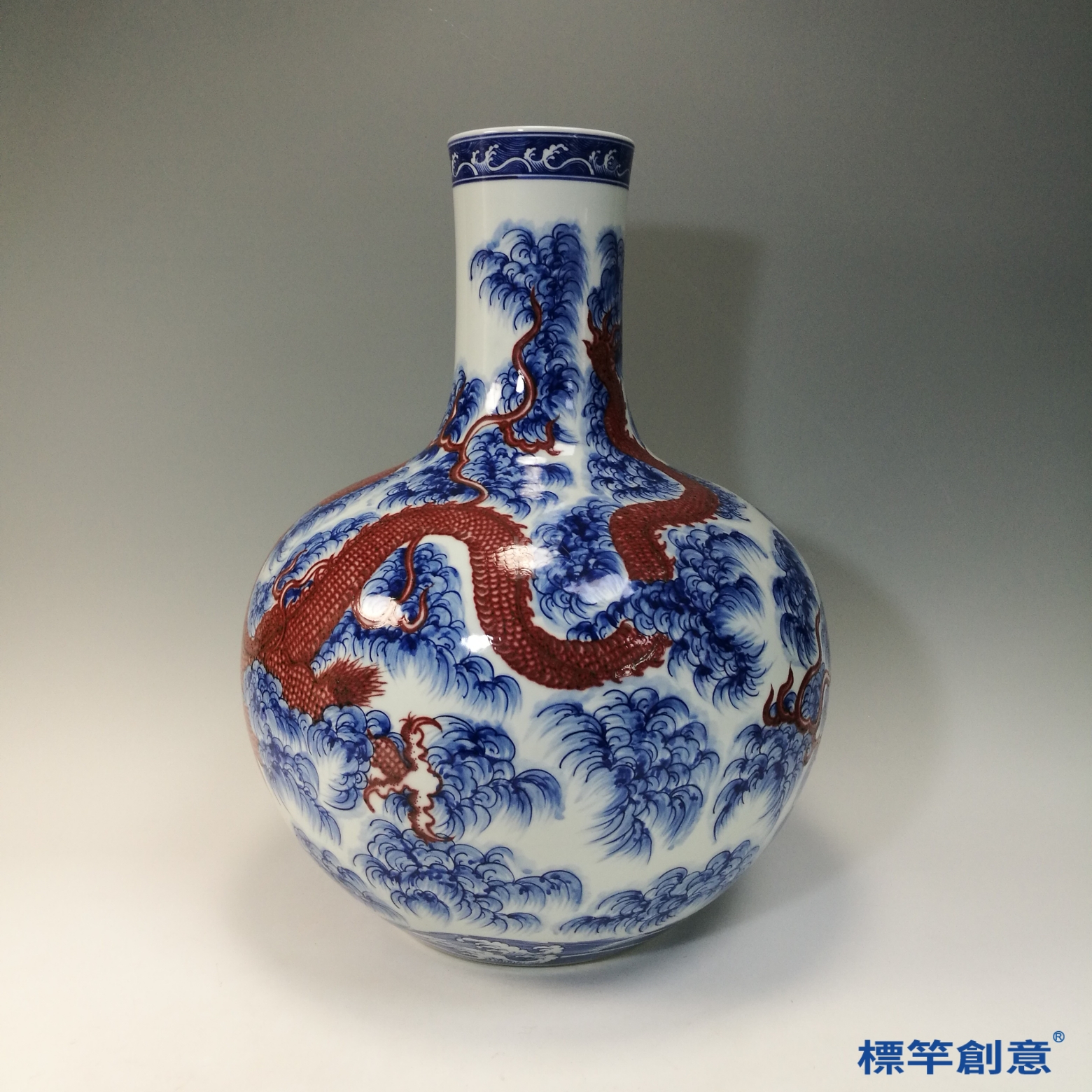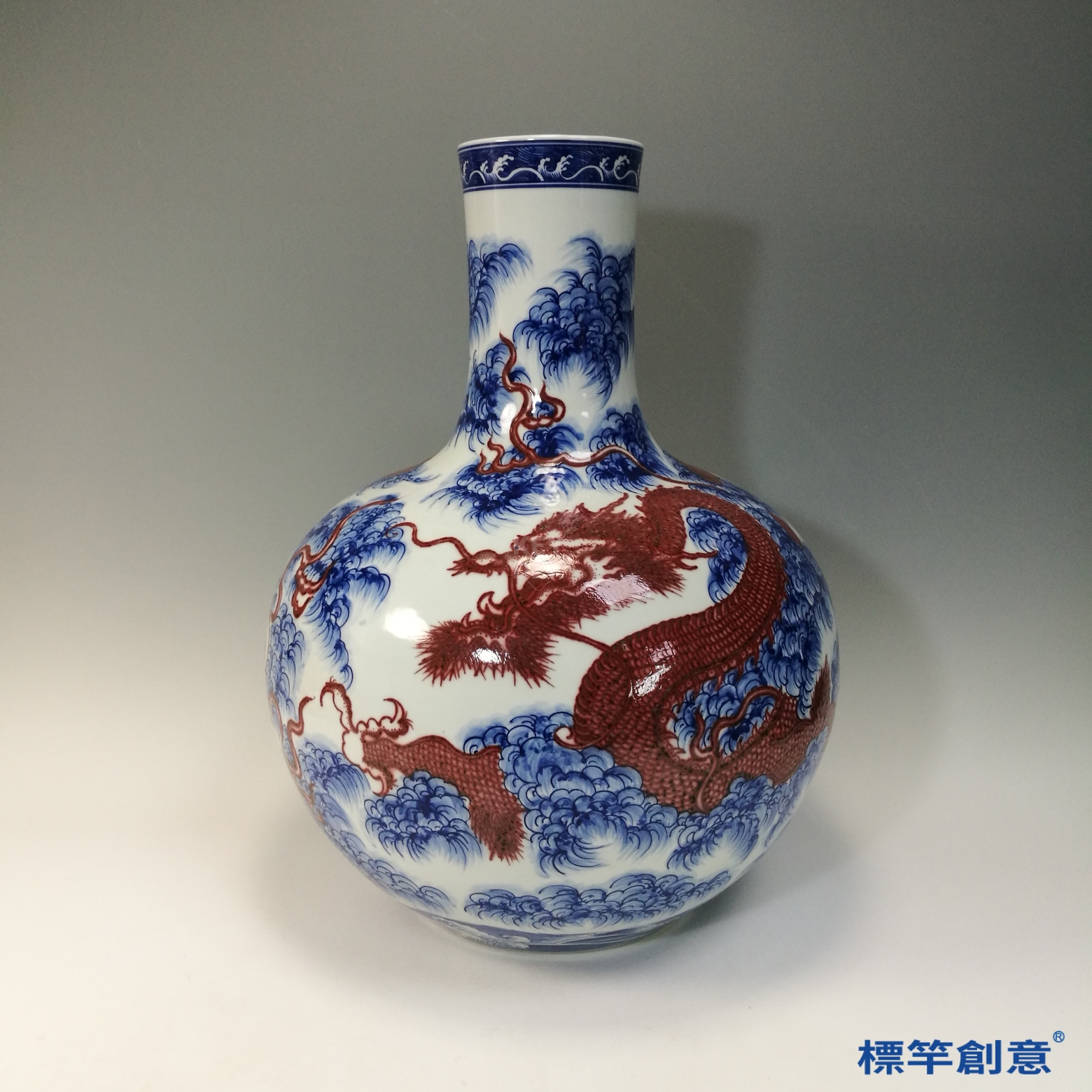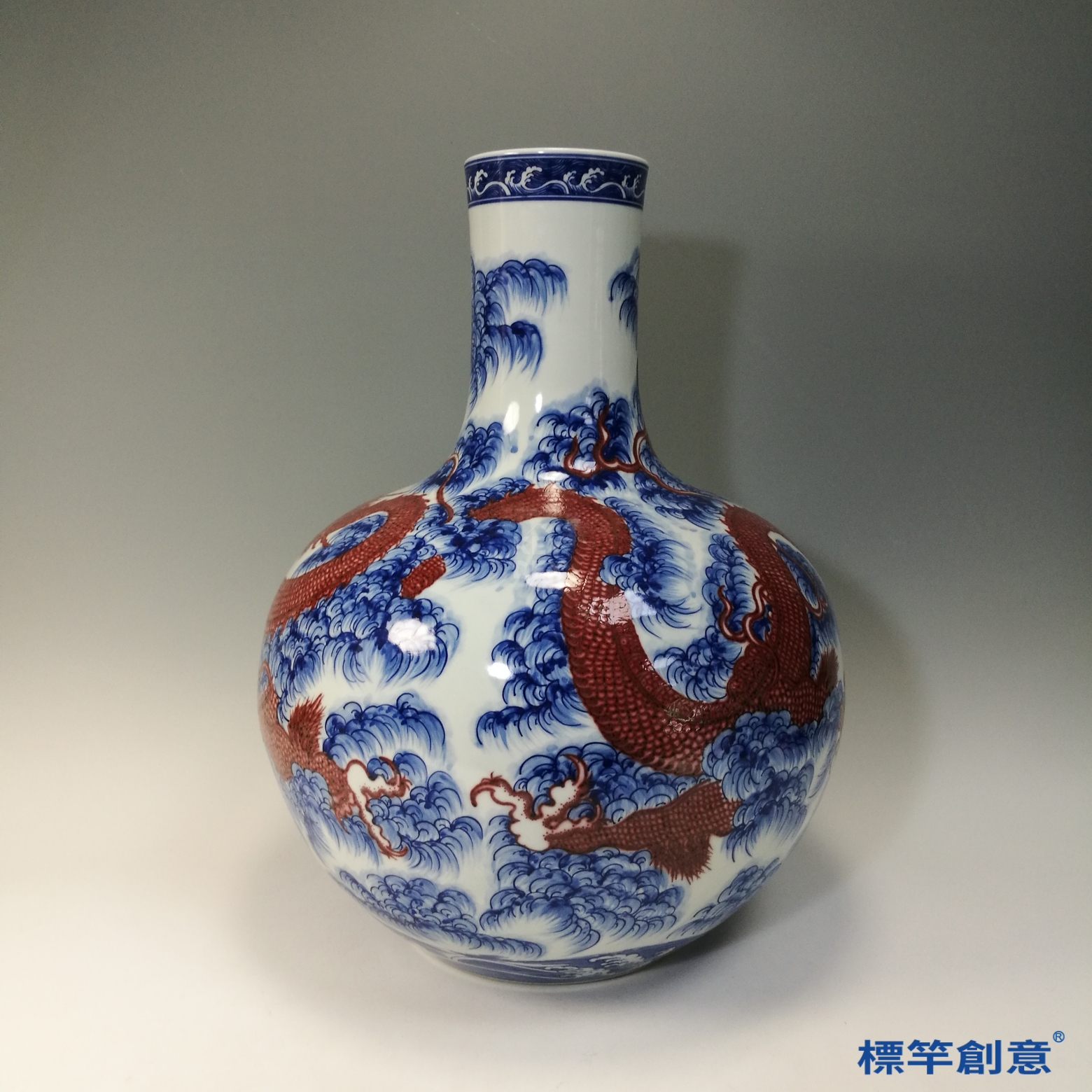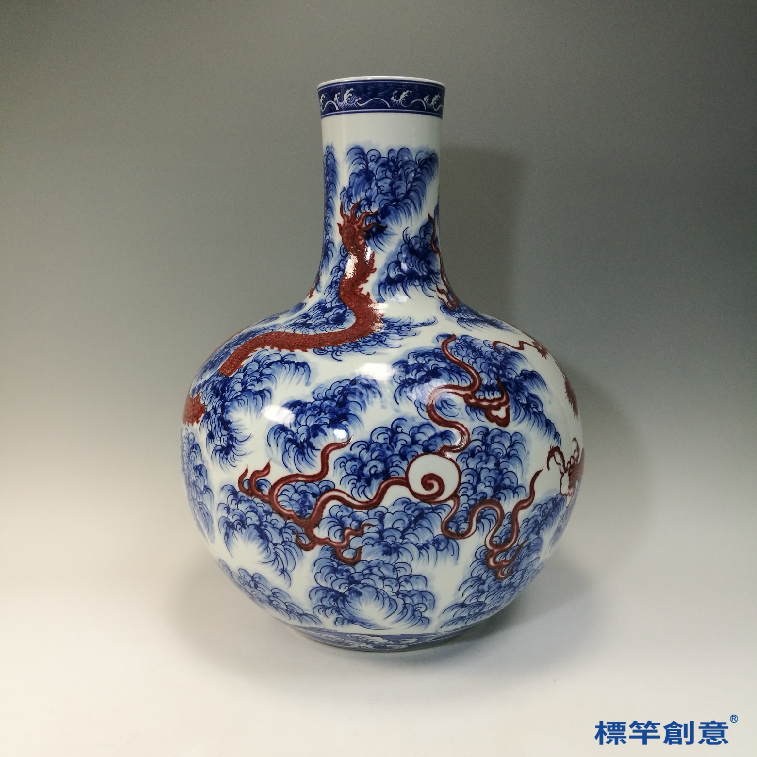 IA081 清乾隆青花釉裡紅雲海龍紋天球瓶