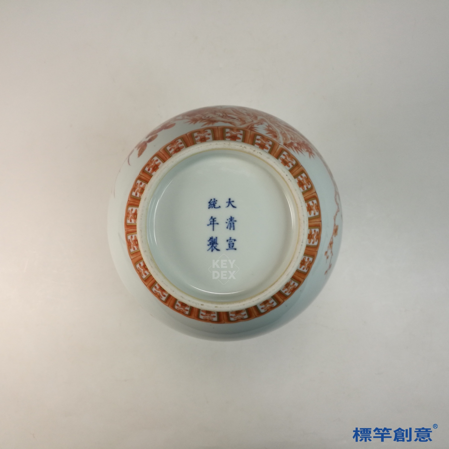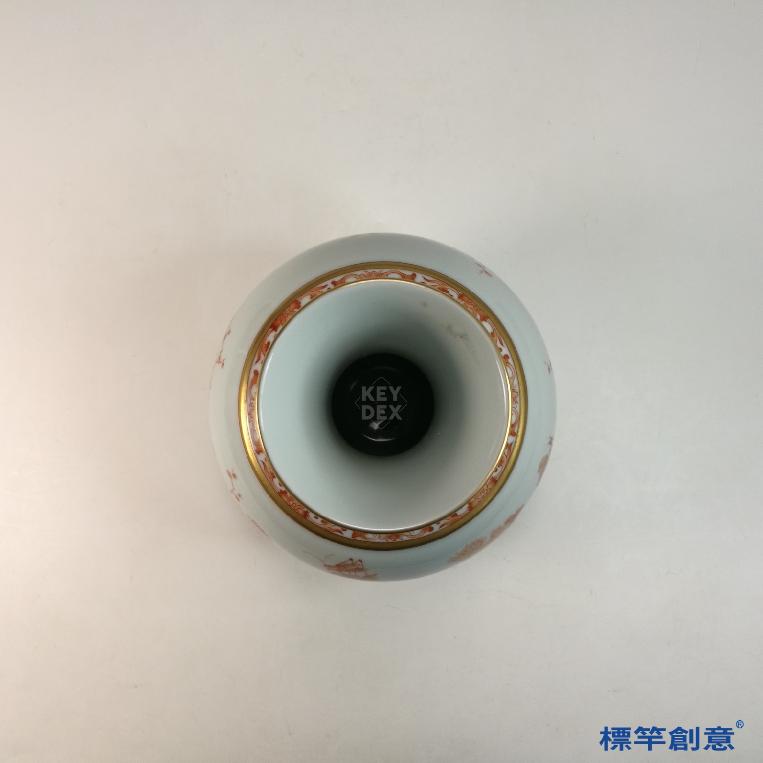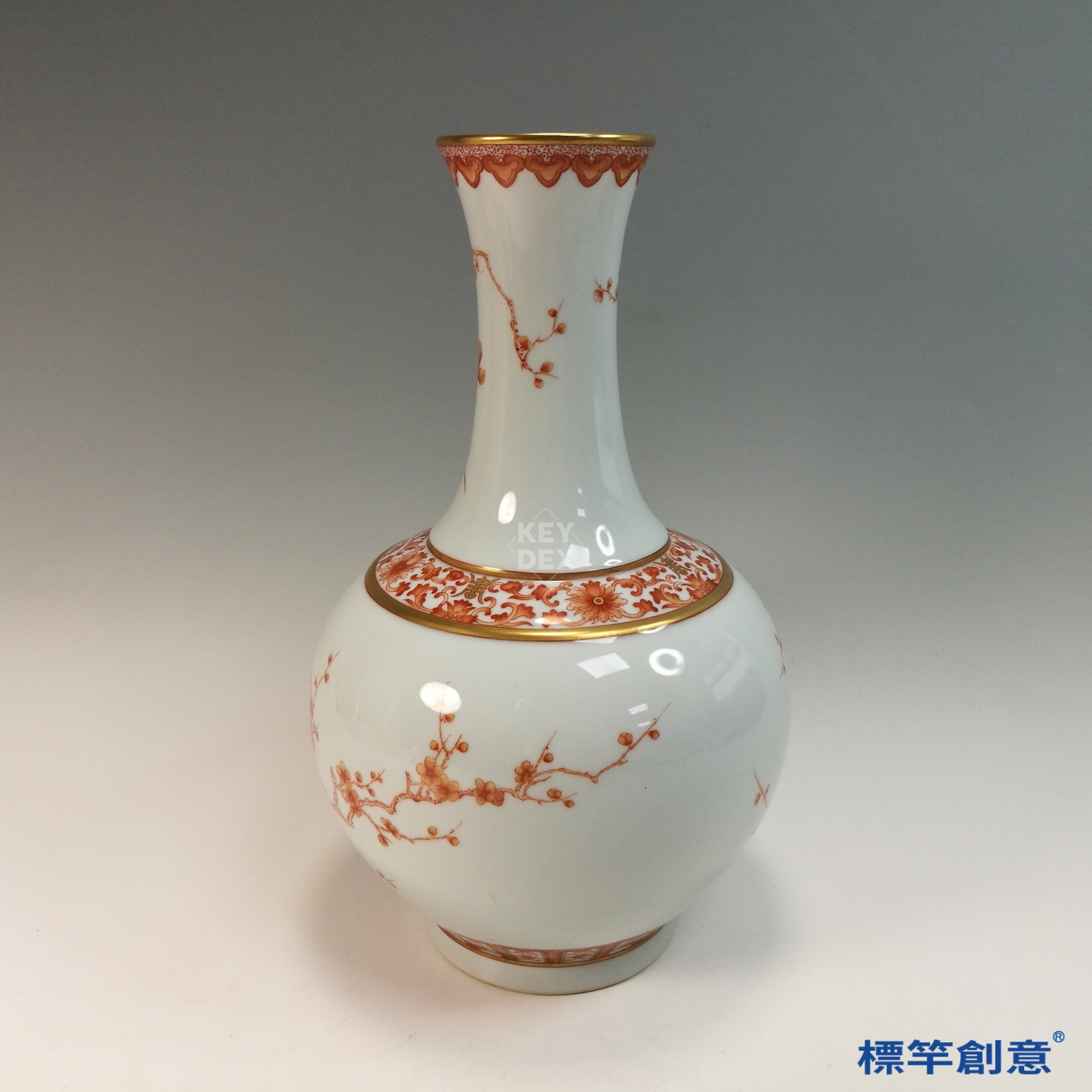 IA088 清代宣統景德鎮官窯礬紅彩花鳥描金賞瓶