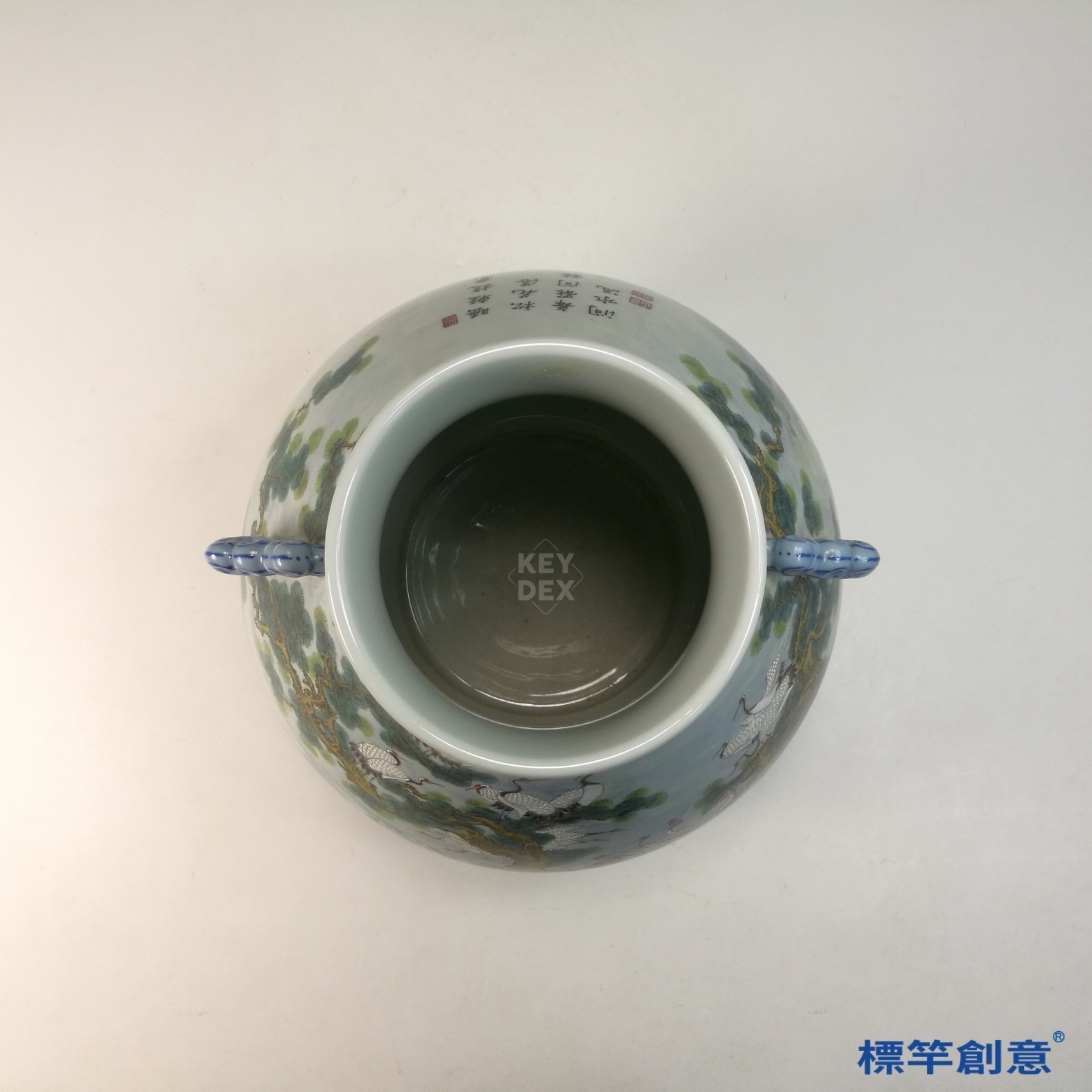 IA089 清代光緒景德鎮官窯粉彩松鶴延年雍正款雙耳尊