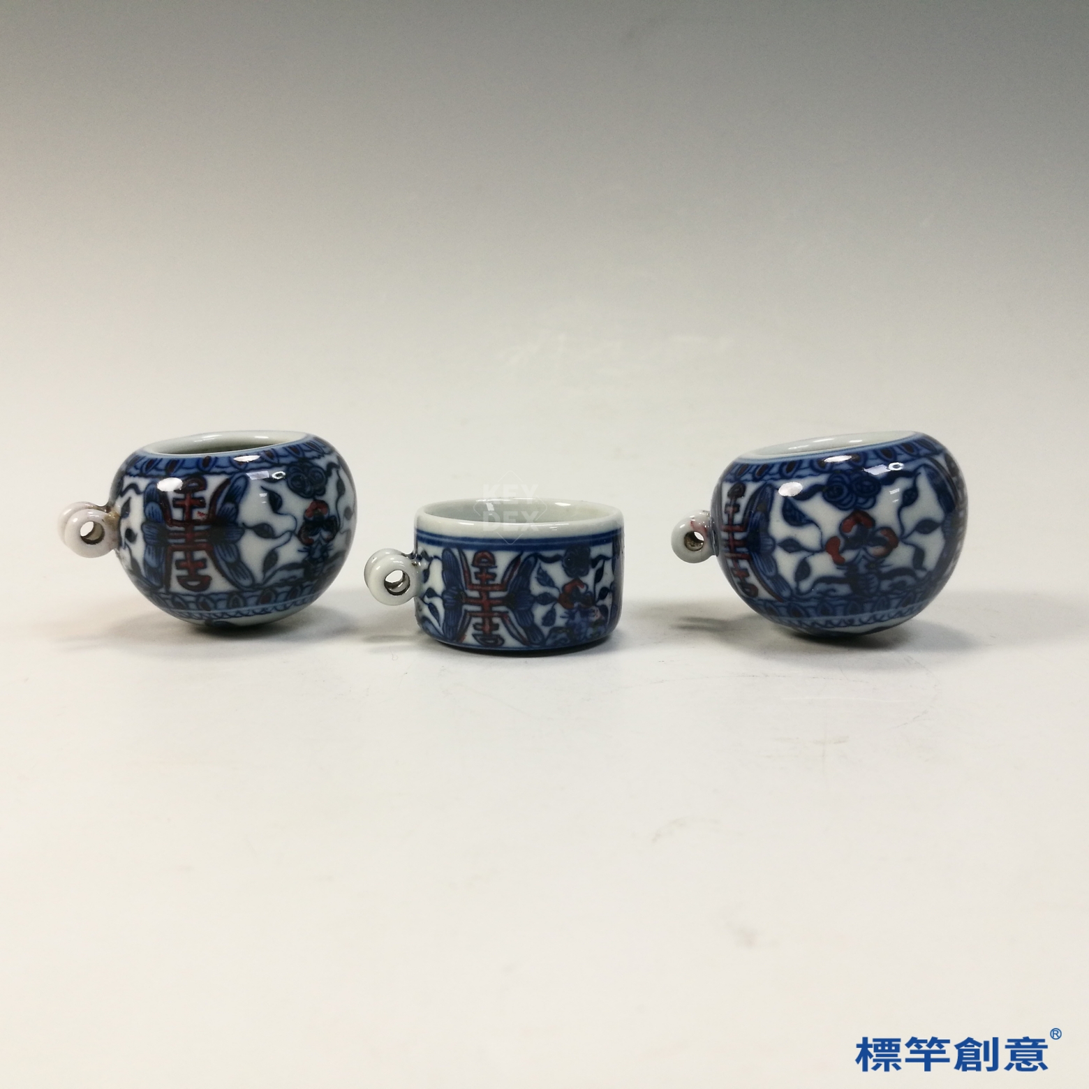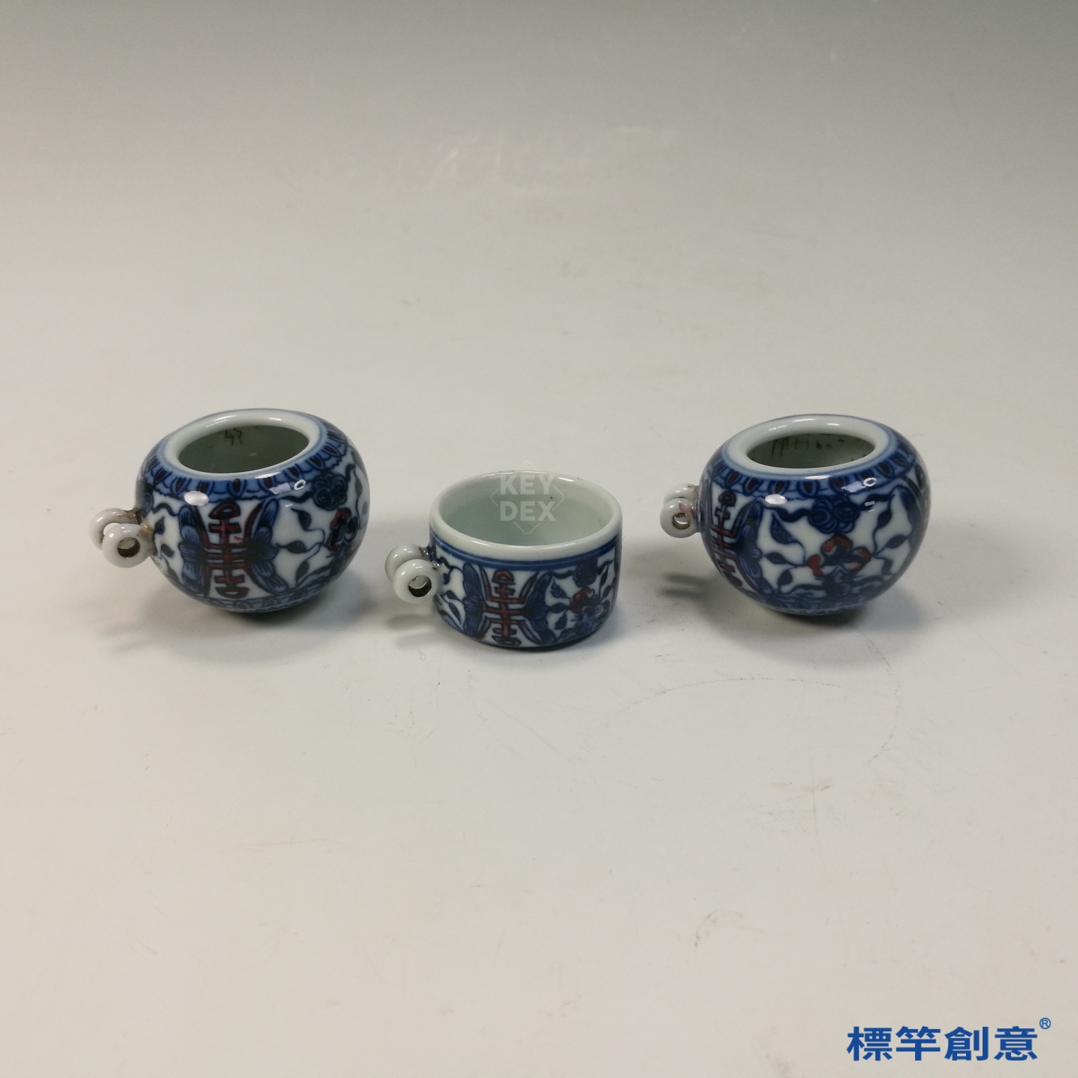 IA095 清代康熙青花釉裡紅壽字紋鳥杯