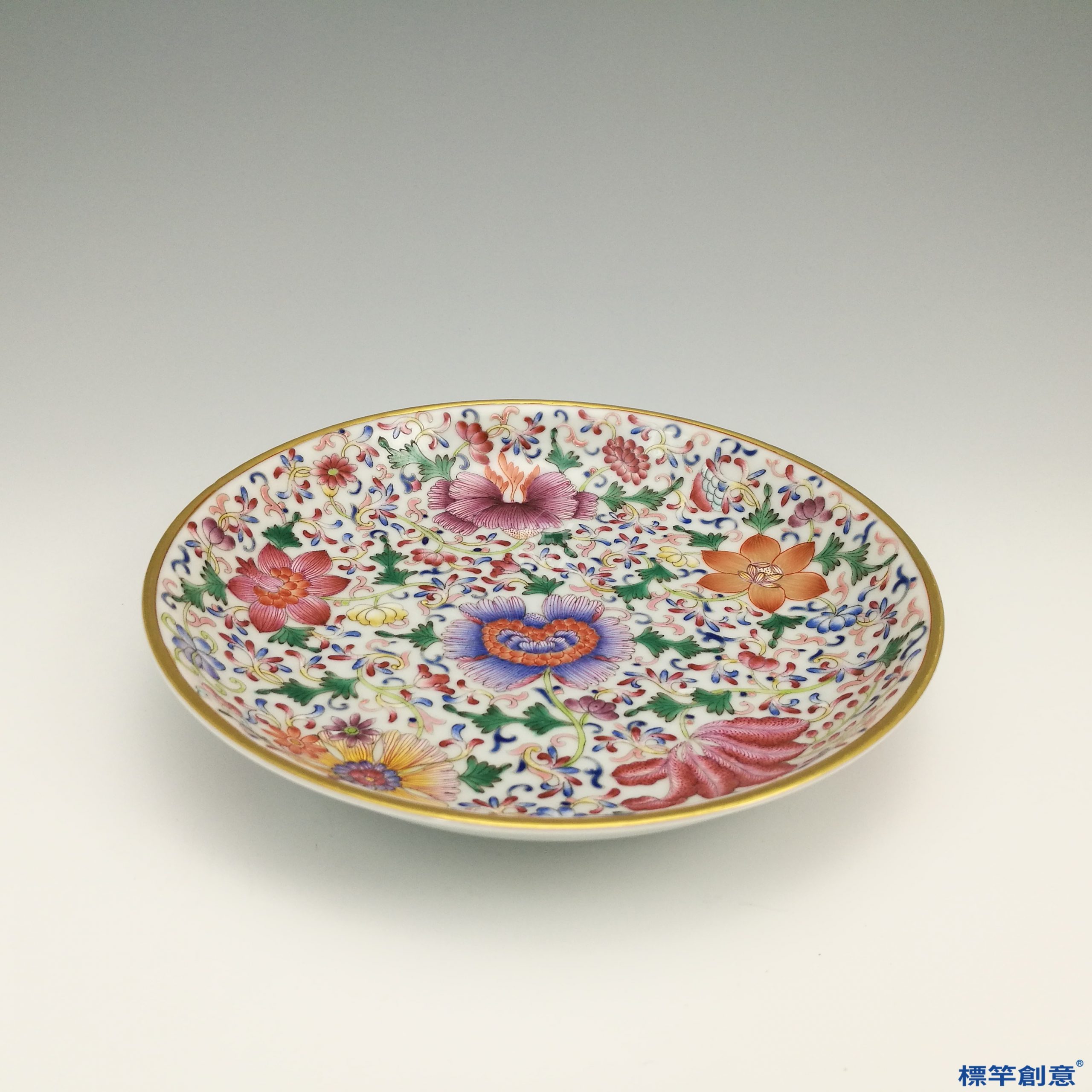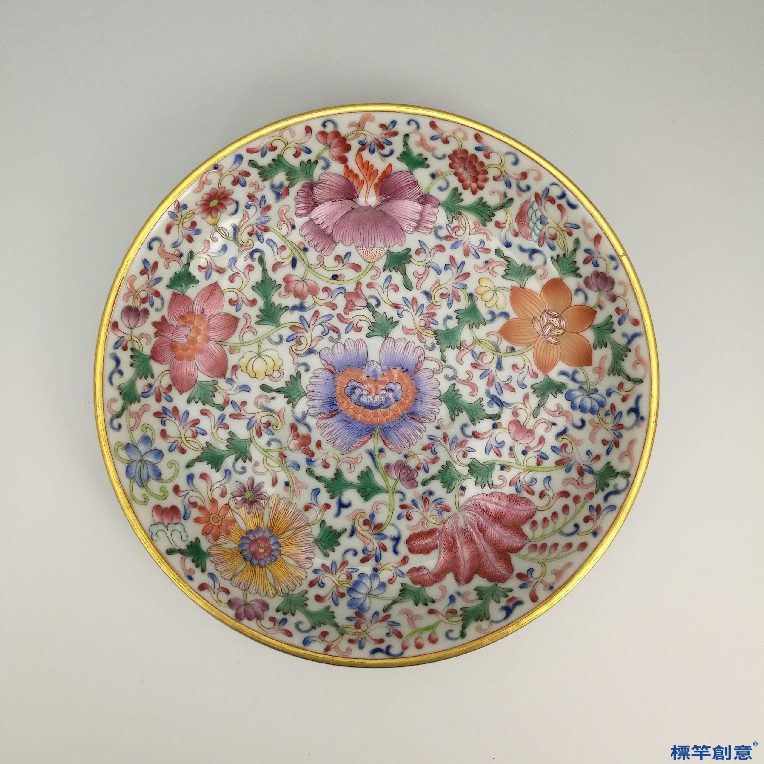 不管「百花不落地」是那一種説法,它是原創於清雍正時期,發揚於乾隆時期,寓意為「百花呈瑞,盛世昇平」,而居首功者是雍乾時期的督窯官「唐英」,他引用歐洲傳教士帶來的新釉料,也領導開發了中國自己的釉料,造就了「百花不落地」的多彩及藝術性。
