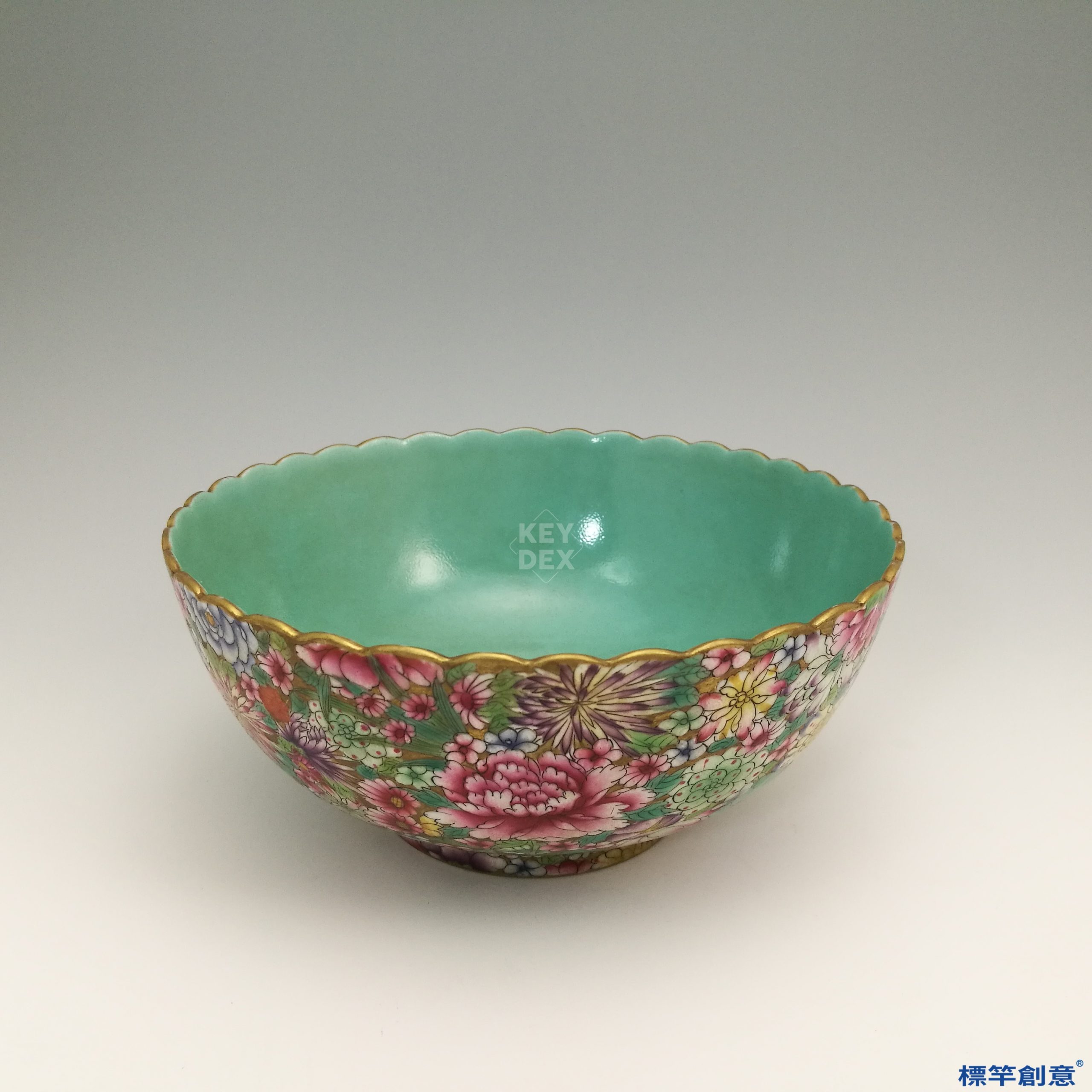 IB003 民國初年彩繪百花不落地碗