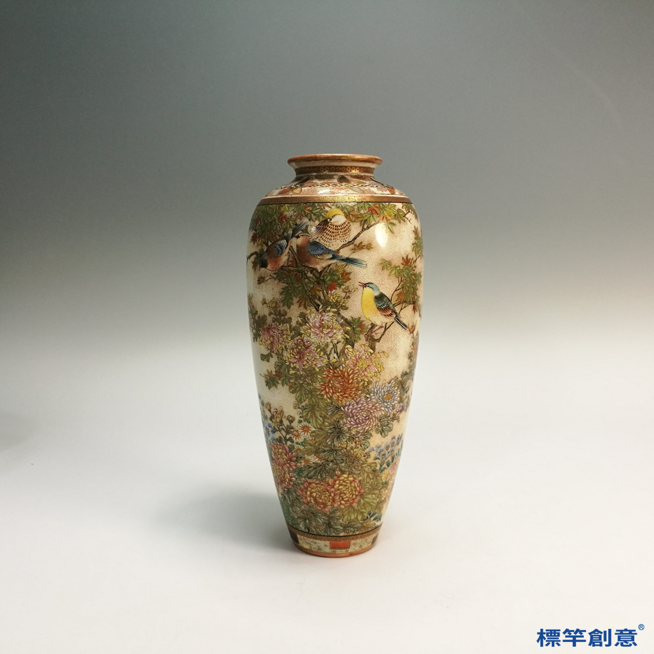 這薩摩燒花瓶極為精緻。薩摩燒是日本著名的瓷器,最早由來自朝鮮的制陶藝人,在日本鹿兒島為薩摩王燒陶,到了明治維新後達到藝術的頂峰,當時出口歐美,使西方的鑑賞家迷醉了一百多年,並在各世博會上受到好評。有一位歐洲人去拜訪薩摩燒的工房,他用放大鏡看完後目瞪口呆,一個2厘米左右的人物,從臉到穿著都畫的非常細,於是非常驚訝薩摩燒這樣出類拔萃的工藝。
