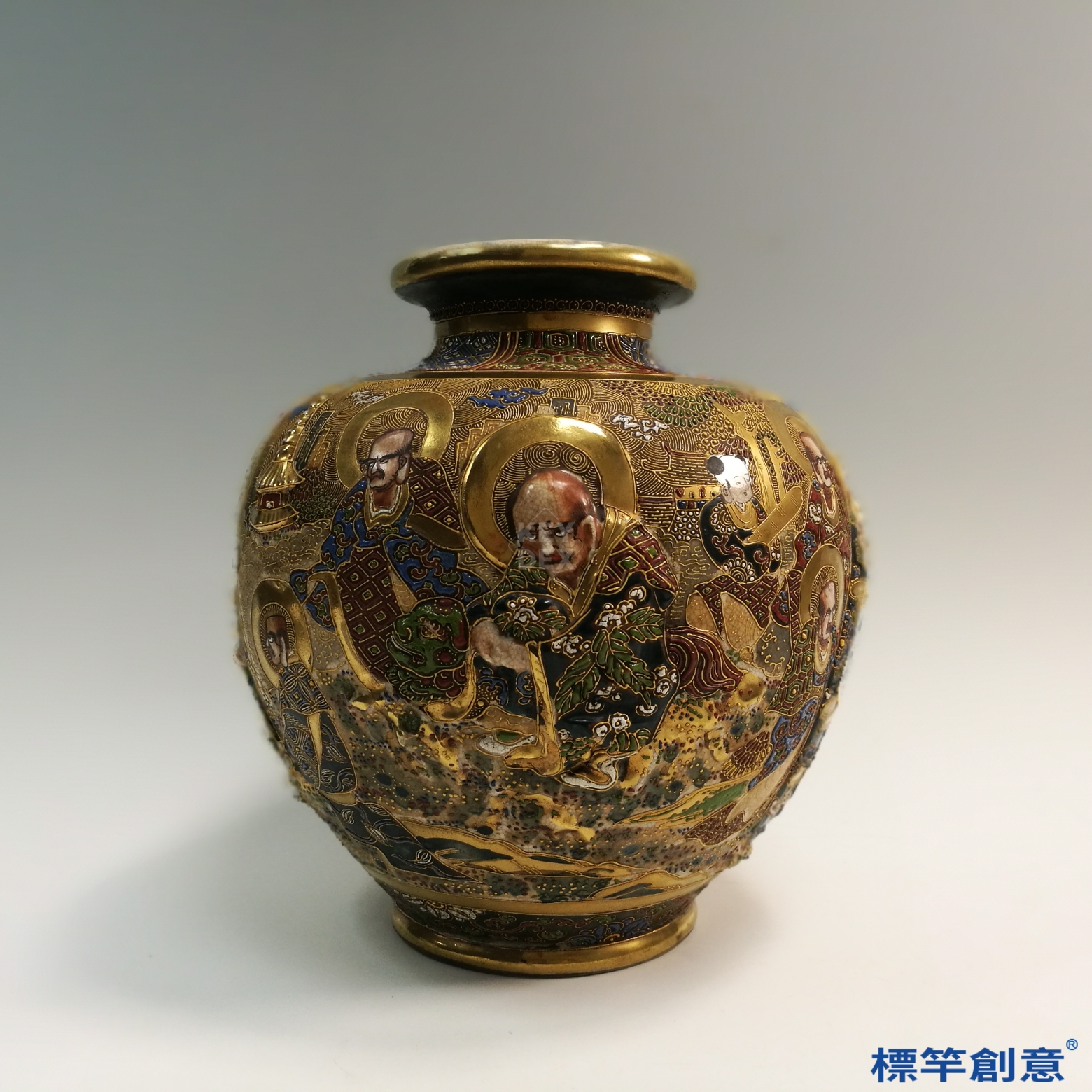 JJ016 日本明治時期薩摩燒沈壽官款十六羅漢花瓶