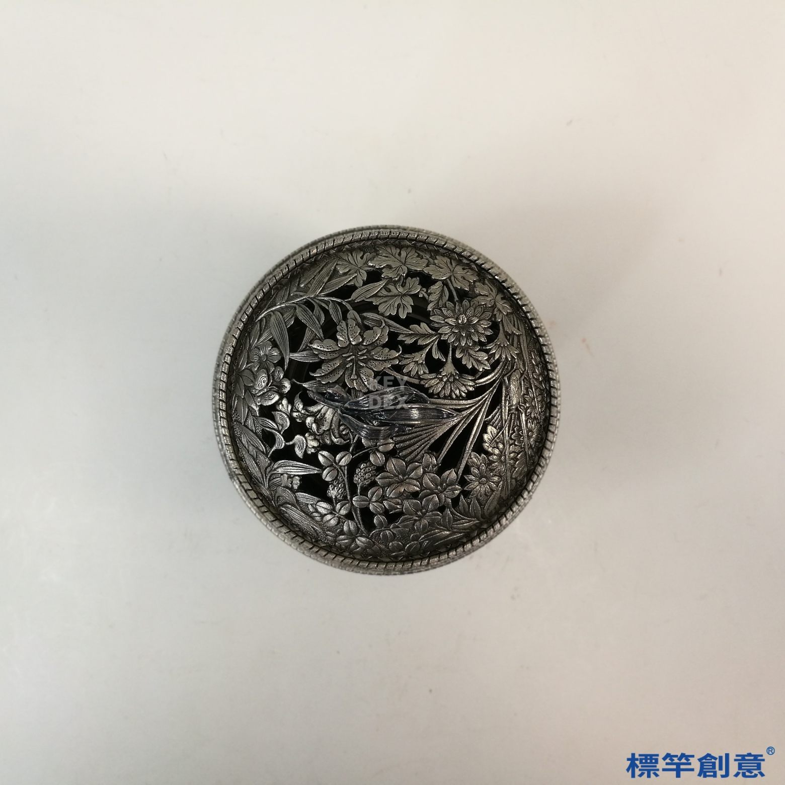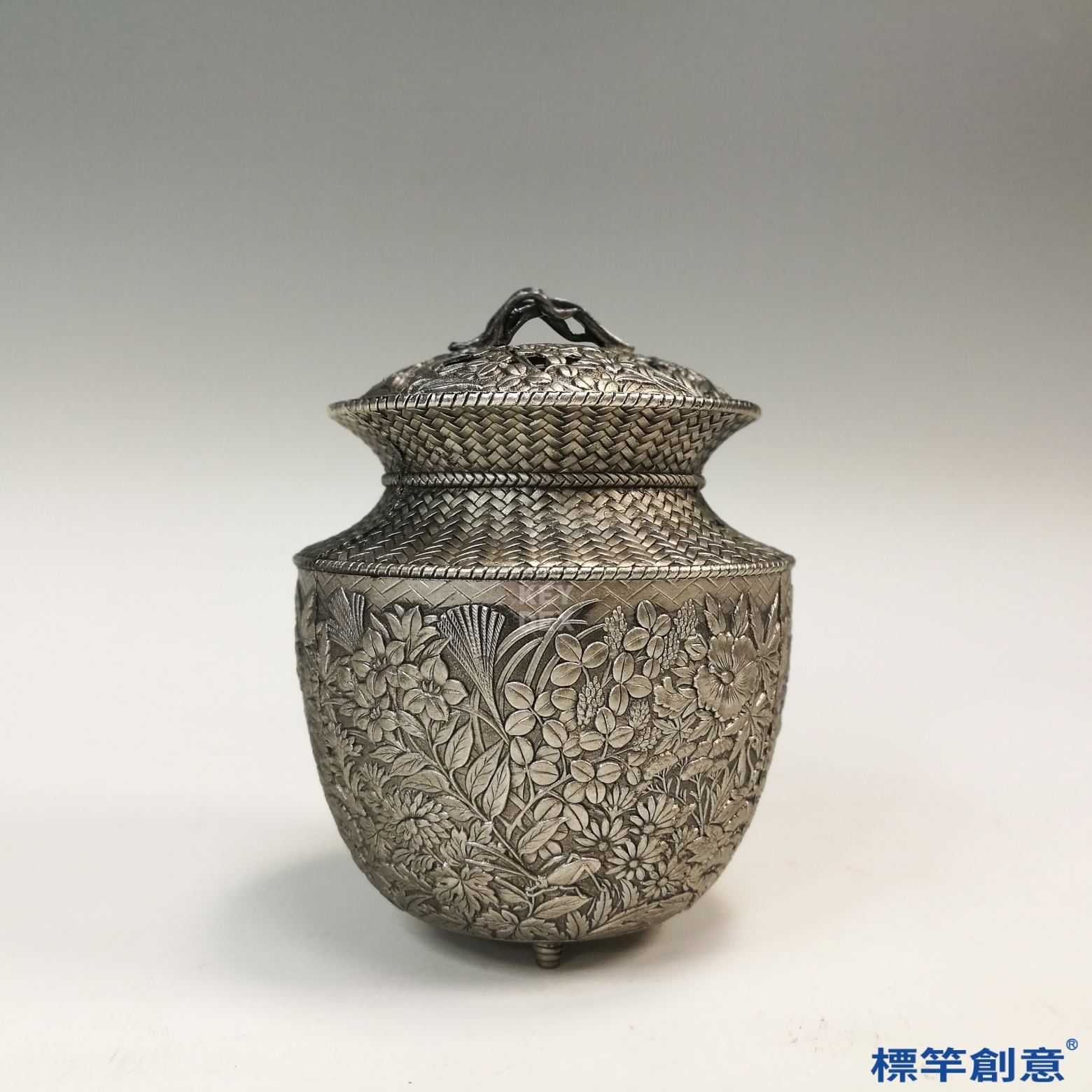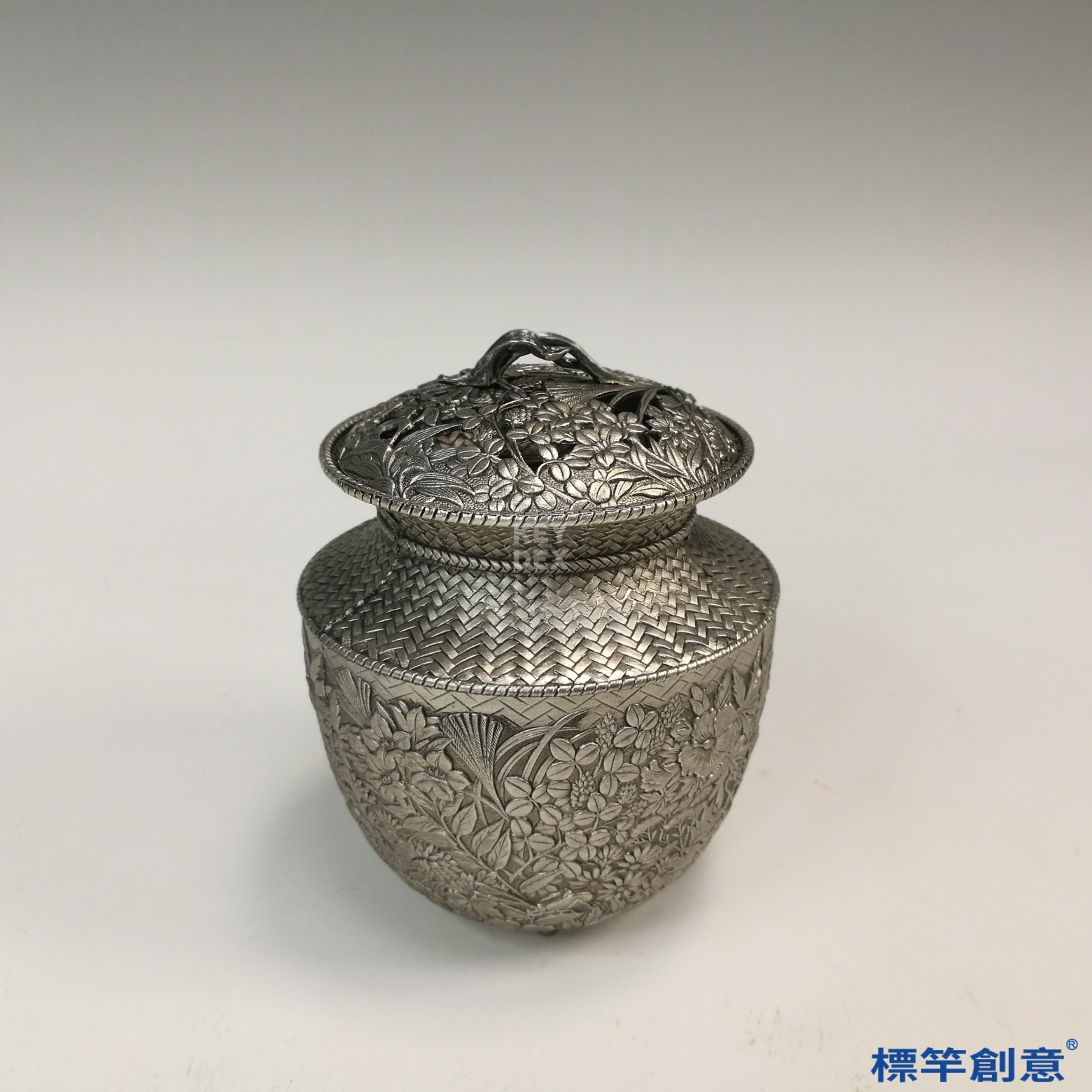 JJ017 日本大正時期洋銀鍛仿唐代魚簍形薰香爐