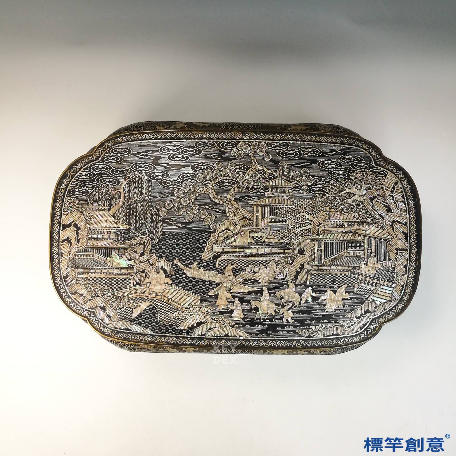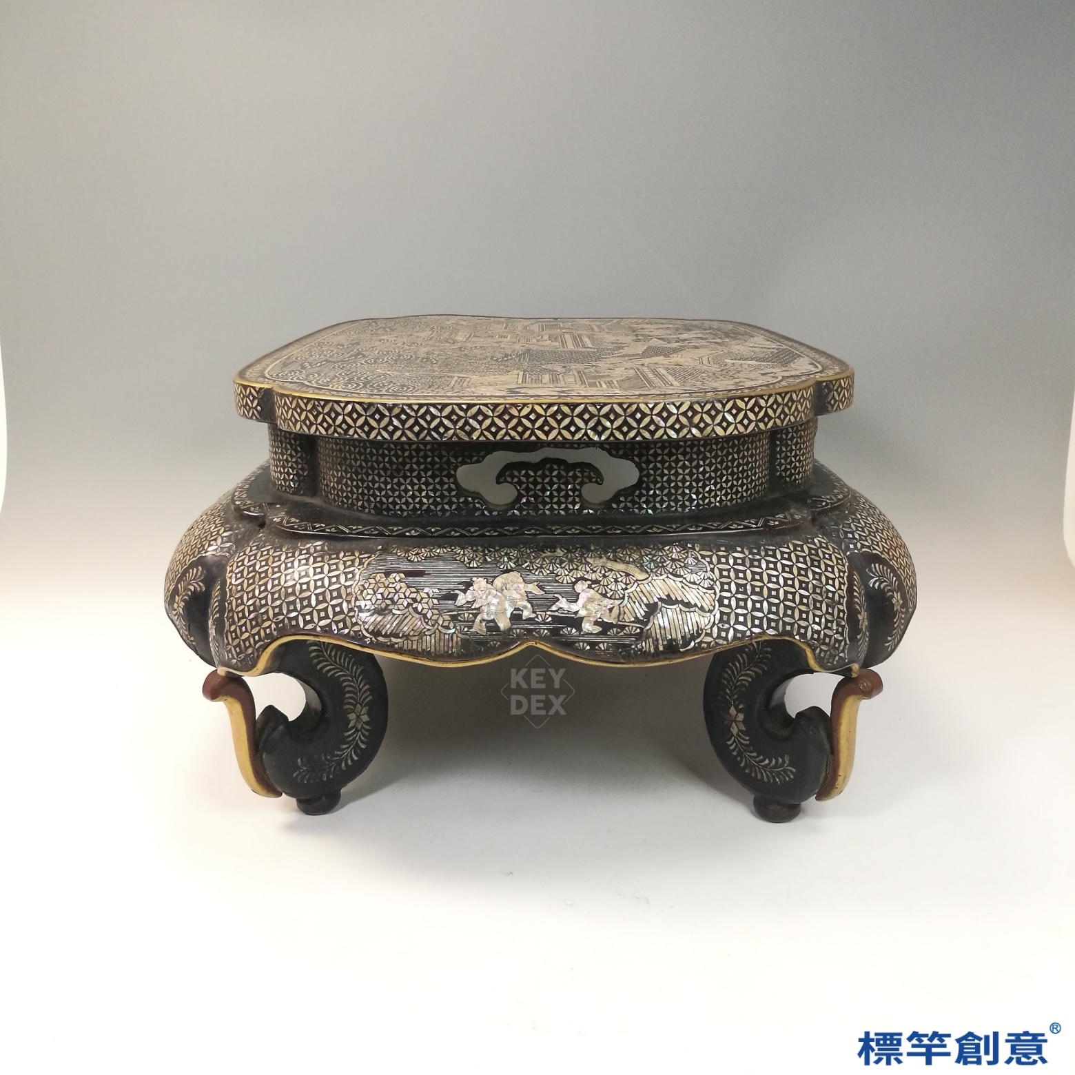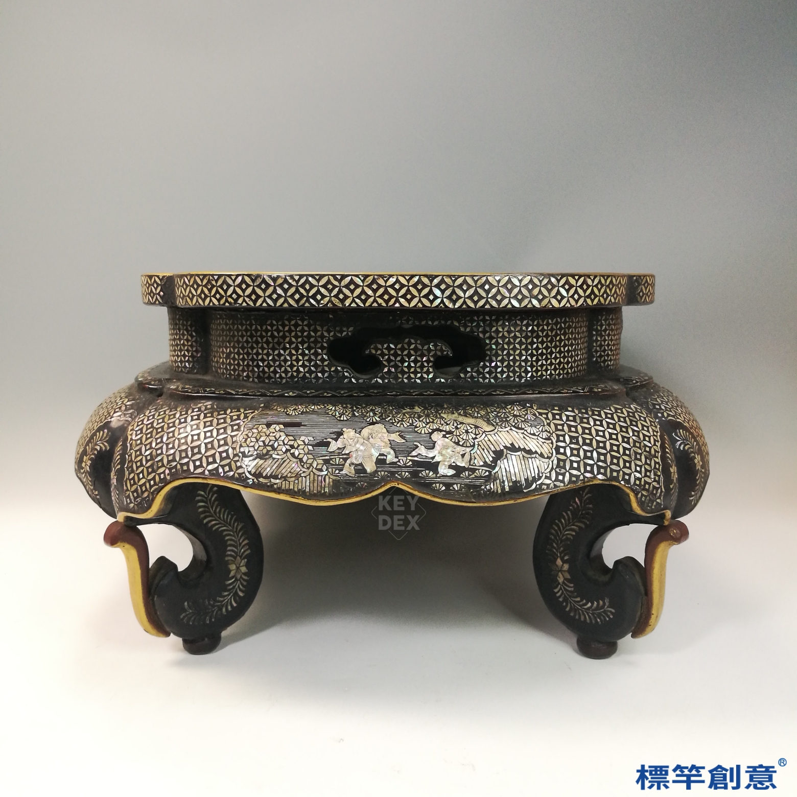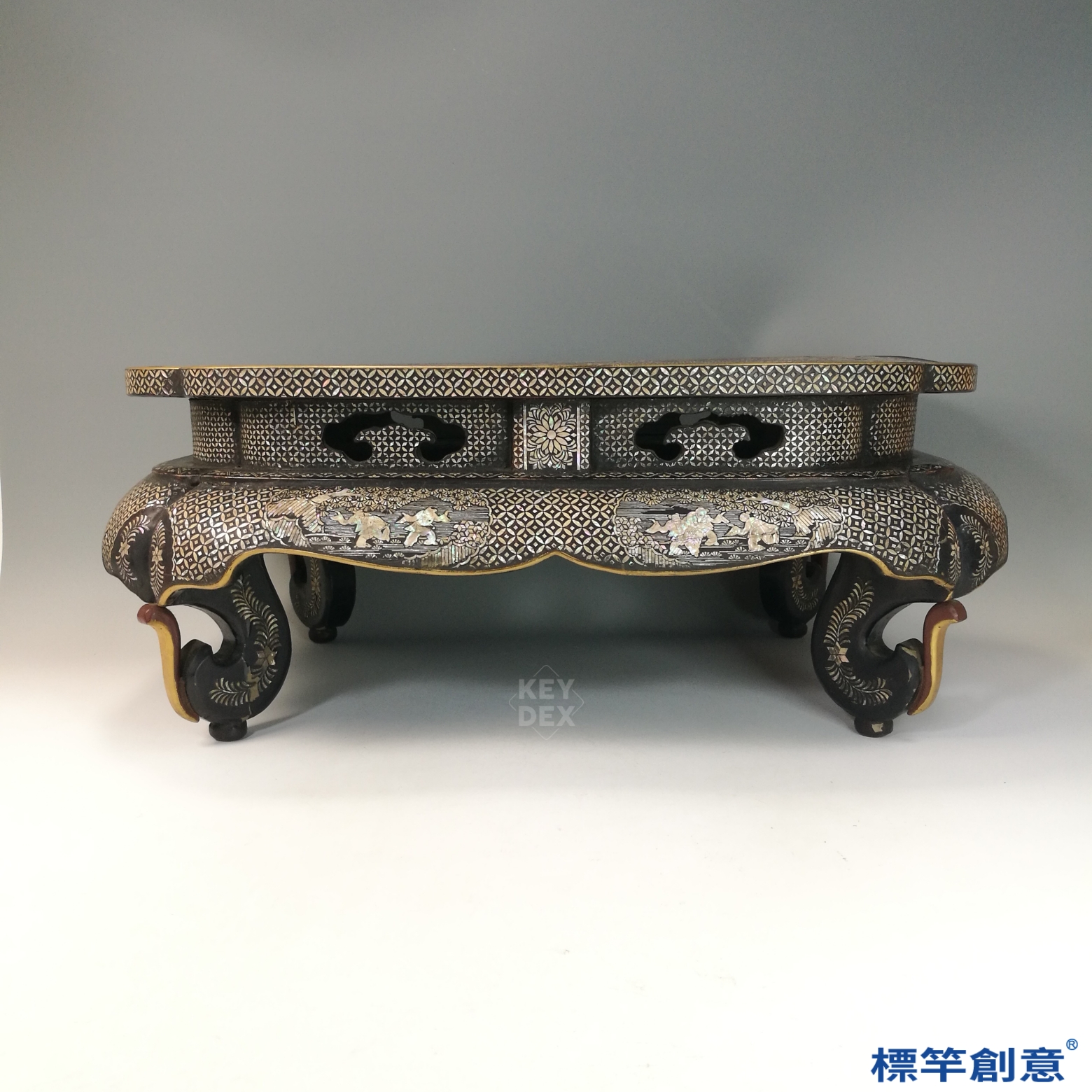 JJ023 日本明治時期松夀堂青貝樓閣山水足案文卓
