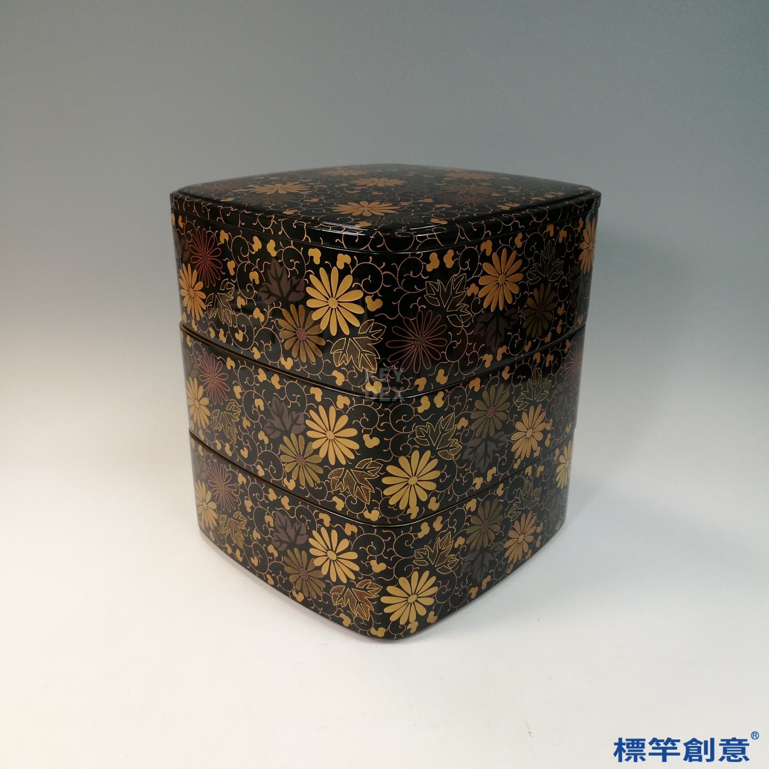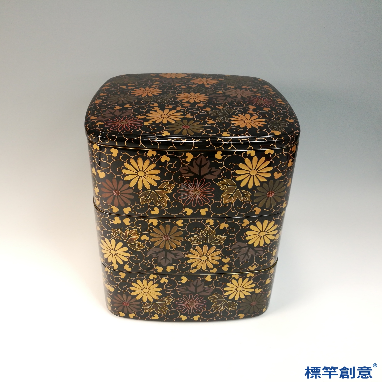 JJ024 日本大正時期漆器菊唐草蒔繪三段重箱