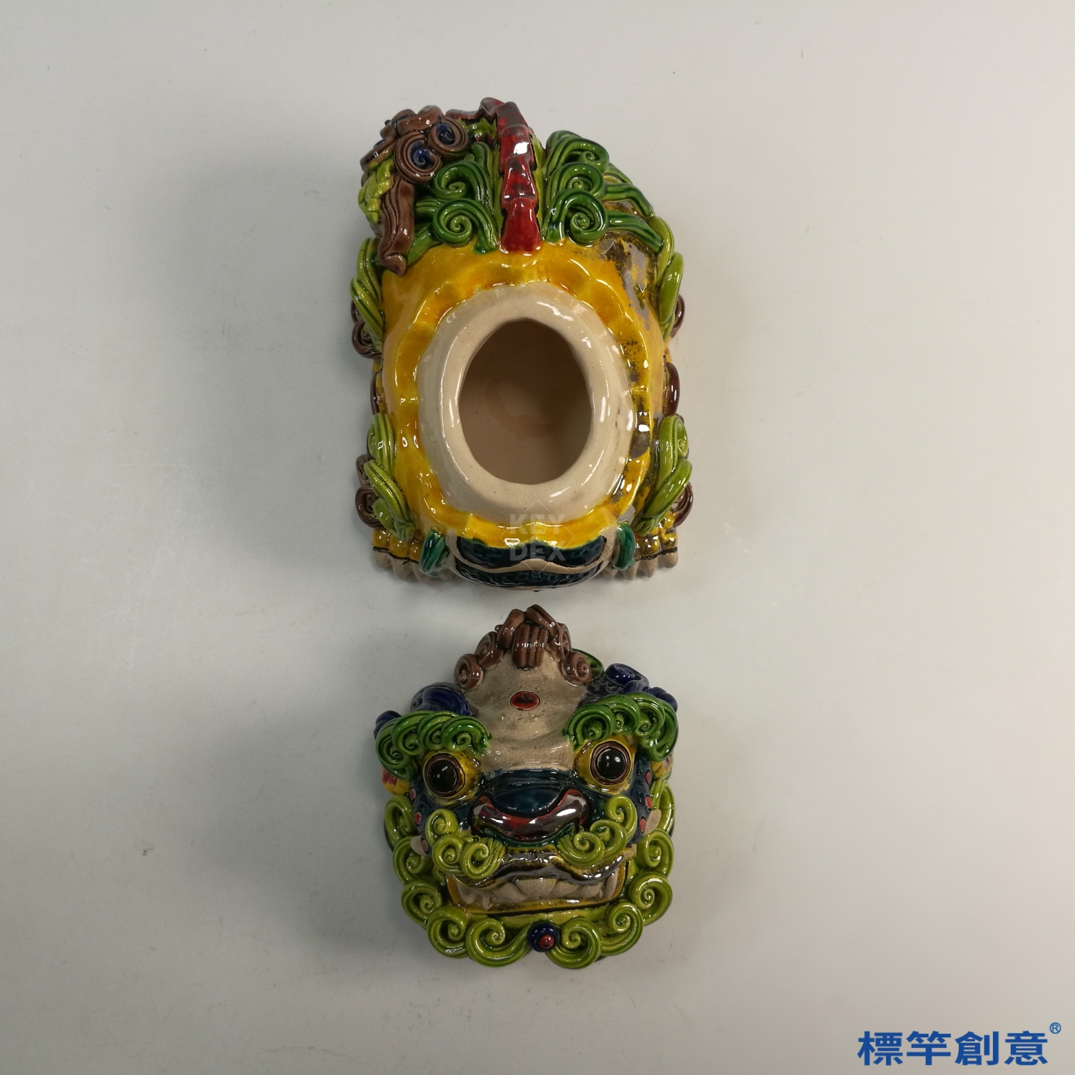 KK022 21世紀板陶窯三彩陶瑞獸薰香爐
