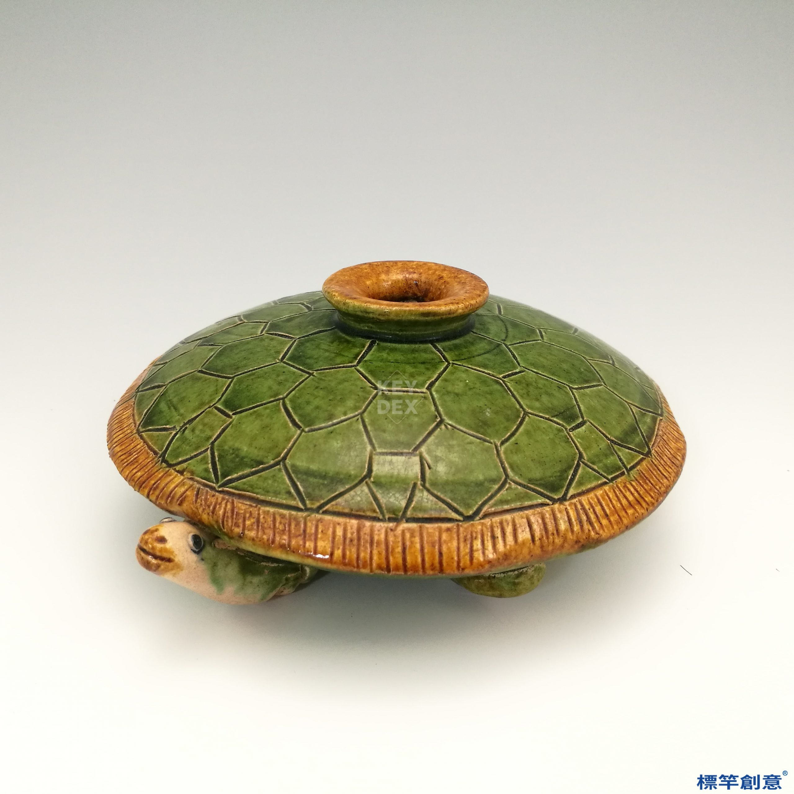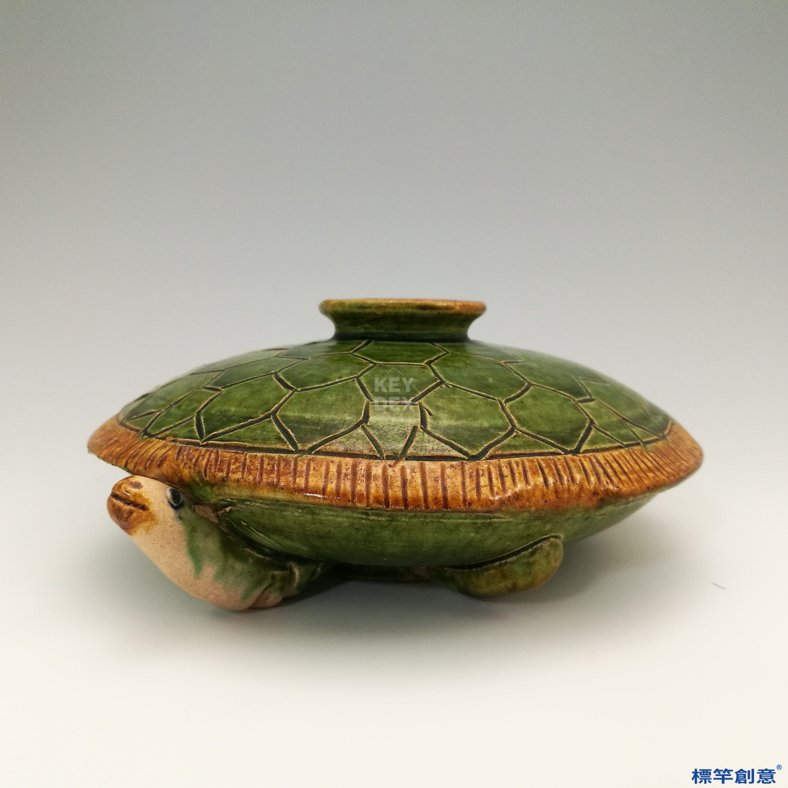 KK044 20世紀末三彩陶仿遼代龜形油燈